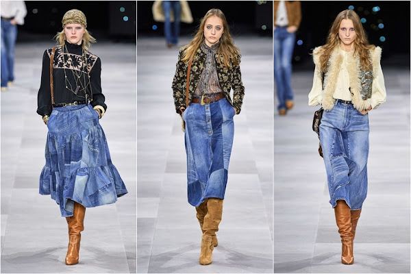Denim, trenchs, crochet, algodón, cuero, serraje, tejidos cómodos y naturales que tienen movimiento y que presumen de atemporalidad. Pantalones campana, faldas vaqueras amplias, vestidos sueltos, sombreros, bolsos de paja, camisas bordadas y lo más increíble.. abrigos de pelo!