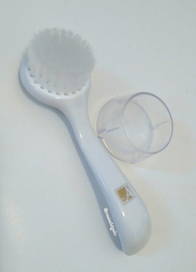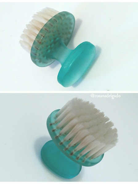 Cepillo manual: con la piel y el cepillo humedecidos, aplico la loción limpiadora y masajeo por todo el rostro en círculos hasta que reparto bien el producto. Al ser una acción manual y controlar la presión que ejerzo, paso suavemente por la zona de los ojos y los labios y, si lo utilizo en la ducha, insisto en el nacimiento del pelo, el cuello y el escote.