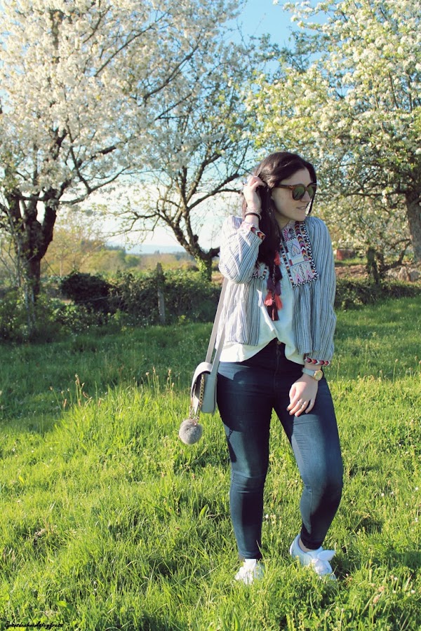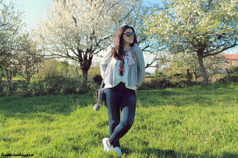 Durante el entretiempo me apetece llevar looks cómodos donde priman los detalles, como es en el caso de mi nueva chaqueta de estilo étnico en la espalda y en la parte delantera que hace que el look no pase desapercibido.