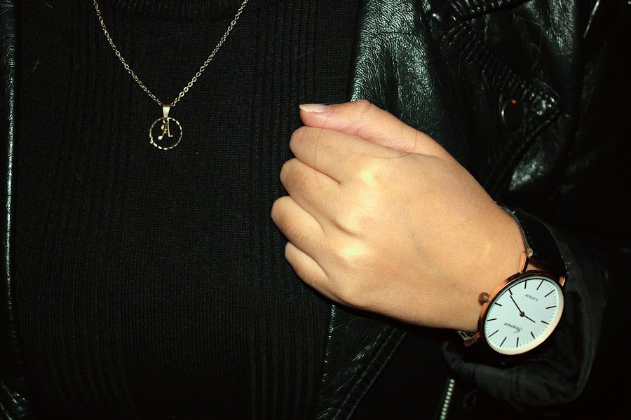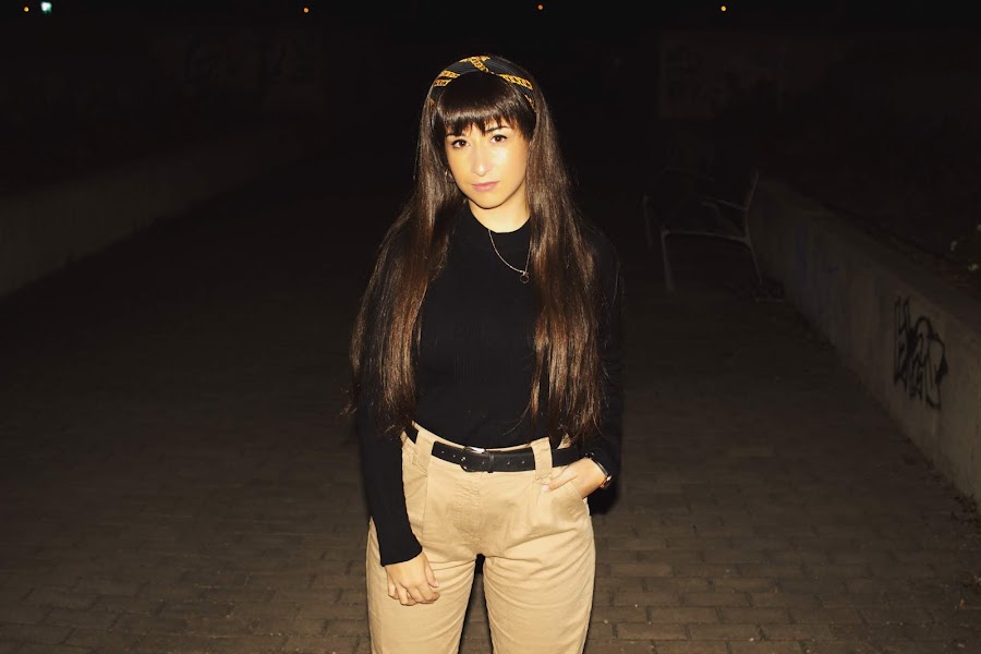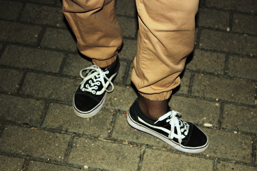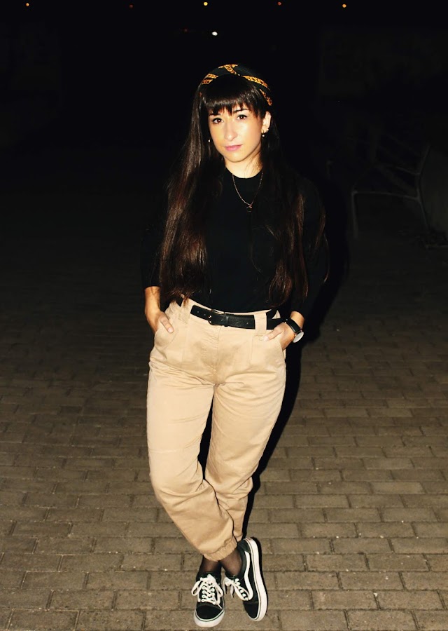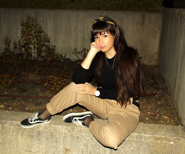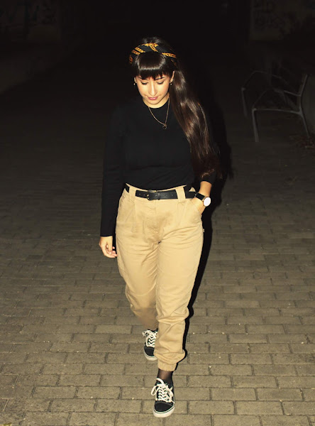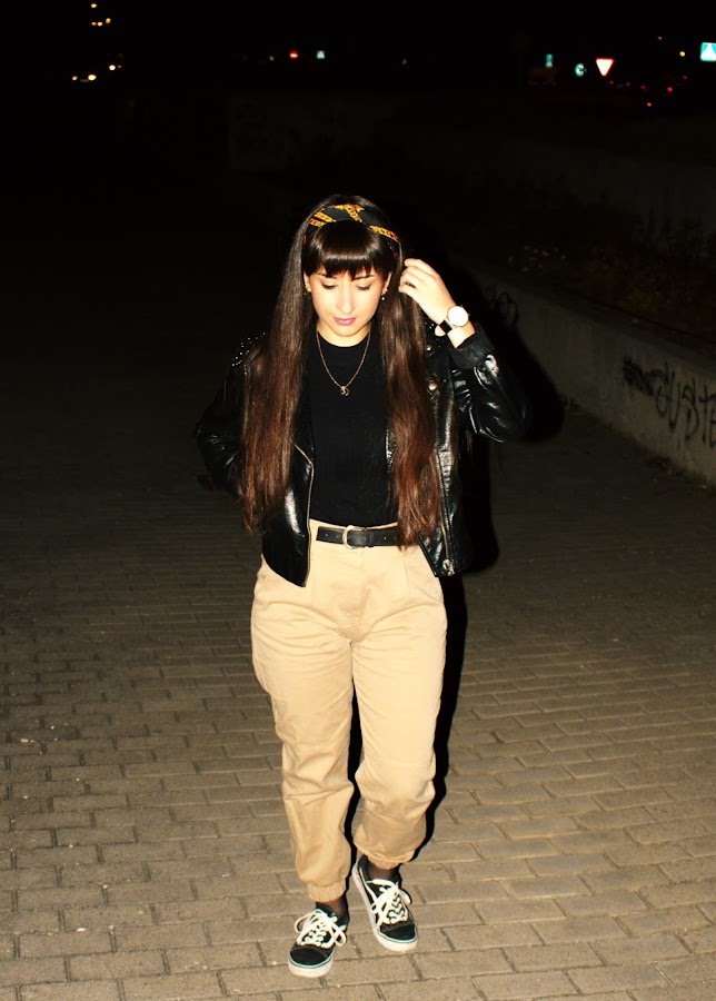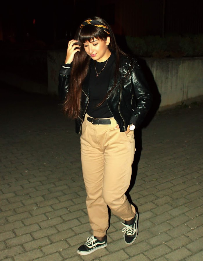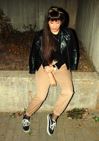 Scarf: Zara (same here) // Top: Stradivarius (same here) // Pants: Bershka (same here) // Fishnet socks // Belt: Vintage // Shoes: Vans // Biker: H&M (old) // Watch: Banggood (similar) // Necklace & Earrings: Primark