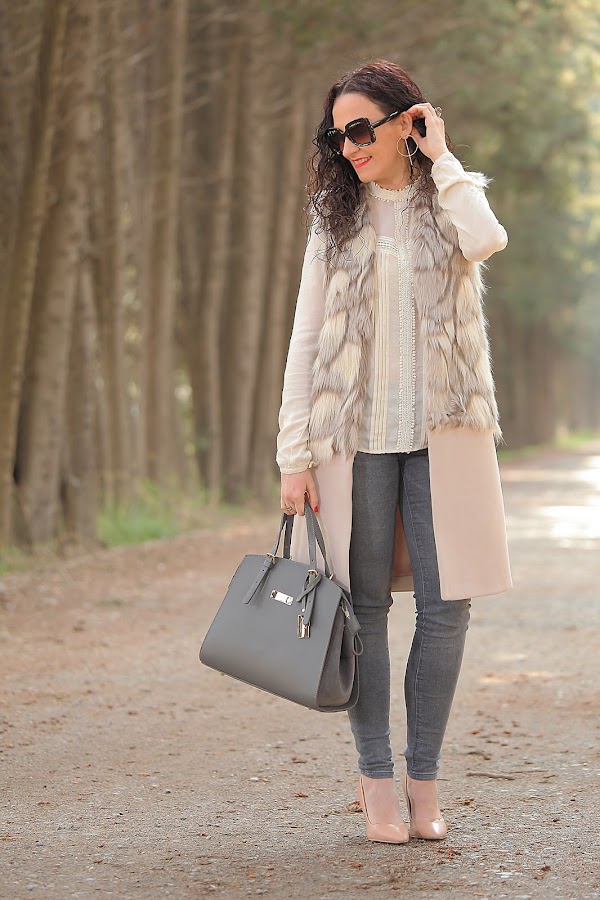Hoy os enseño el look que llevé el domingo pasado y que muchas de vosotras ya visteis en mis redes. Como nos hizo un día de sol buenísimo aproveché para ponerme este chaleco que combina paño con pelo sintético. Es de esa clase de prendas que me gusta por lo versátil que es, ya que lo puedes llevar tanto a modo de chaleco, como os lo veis hoy, o con una biker de piel chocolate debajo quedando también ideal.