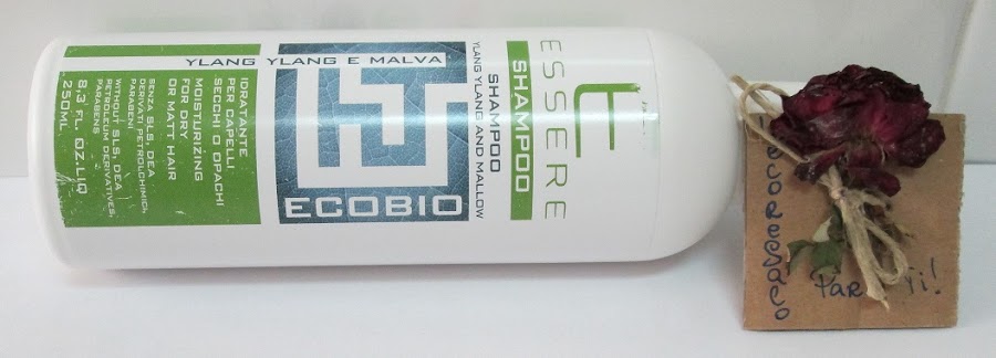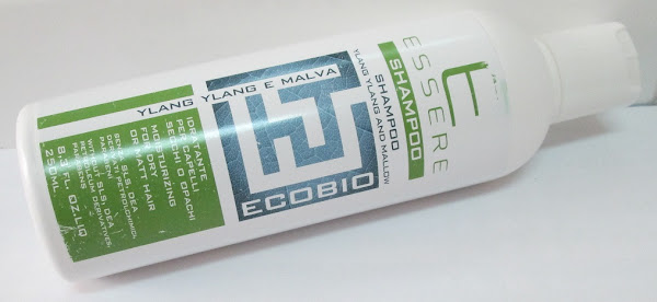 Bueno, el producto que he estado probando este último mes, es conocido con el nombre de "Champú Biológico Ylang Ylang y Malva" de la marca italiana natural "Essere".
