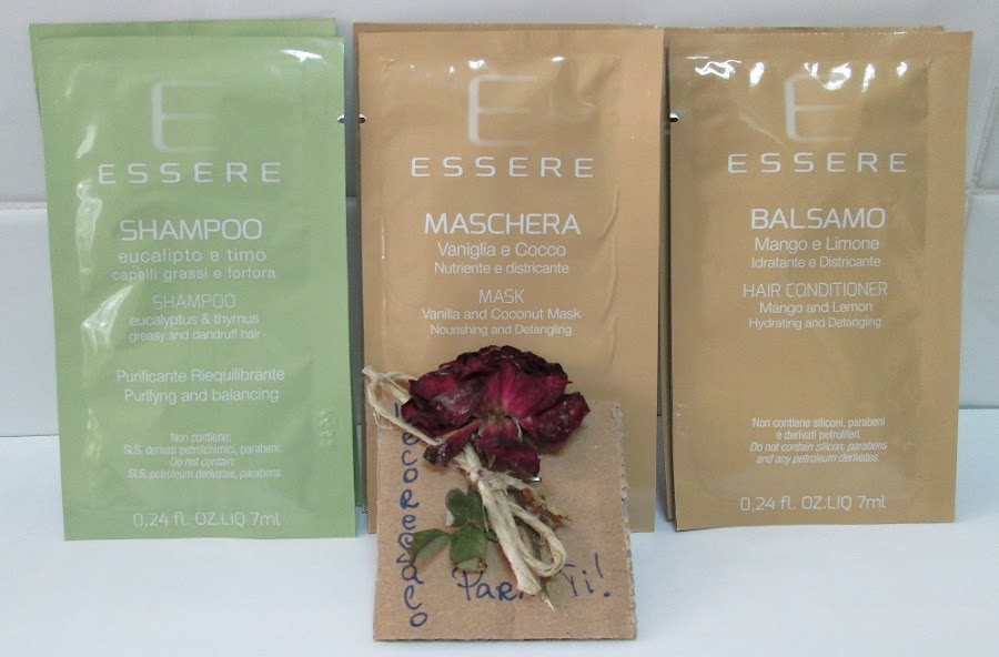 Junto con esta gran variedad de muestras, también, de esta marca ecológica italiana..., no puede faltar el detalle de esta rosa seca, tan bonita y característica de esta tienda online. Desde luego, ¡asi da gusto recibir paquetitos!, ¿a que sí?, jejeje.