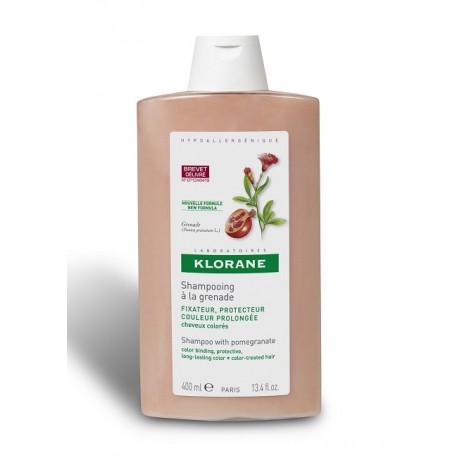 Klorane Champu al exto de la Granada, formulado sin sulfatos, rica en los taninos de Granada y en agentes reparadores, este champú de tratamiento captura y fija el color, al tiempo que repara la superficie del cabello. Al quedar protegido, la coloración se reaviva y se vuelve más luminosa. El cabello recupera su suavidad y su brillo.