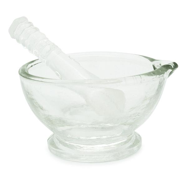 En el mortero añadiremos las pieles de limón deshidratadas y las vamos a machacar (podéis hacerlo en un molinillo). Yo normalmente uso éste tipo de morteros de cristal o cerámica para elaborar mis productos cosméticos.