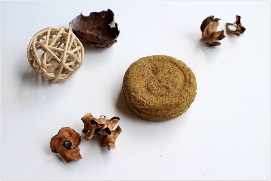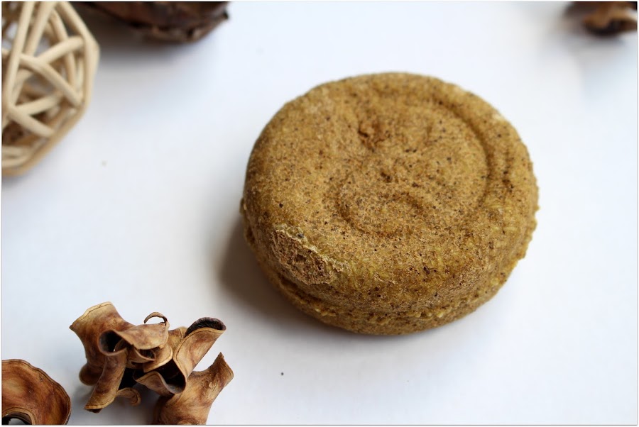 Los ingredientes base de este champú sólido son el café molido y el extracto de cacao tostado, de ahí su olor indefinido (porque no me huele a ninguno de los dos, en realidad). También contiene henna persa roja, que deja el pelo con sensación de hidratación profunda y, sobretodo, un brillo espectacular.