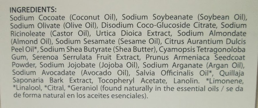 Como sé que a muchas os interesa este tema, en esta foto os dejo sus ingredientes, ¿pinta bien, verdad? jejeje. Bueno, el champú se presenta en una cajita de cartón normal y corriente. Hay varias clases de champú solido, pero yo elegí para mi tipo de pelo, el champú sólido para cabello graso.
