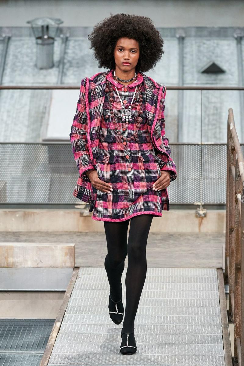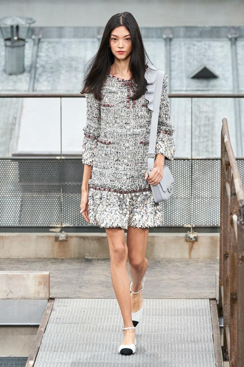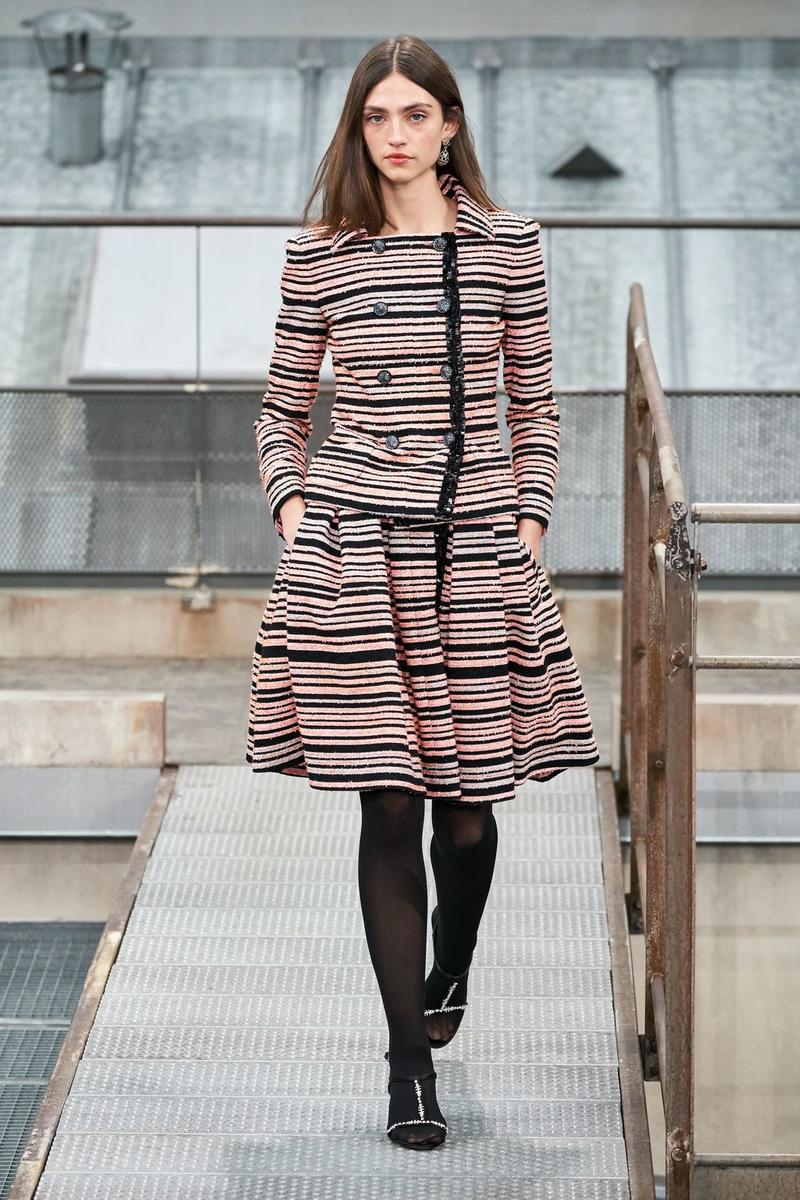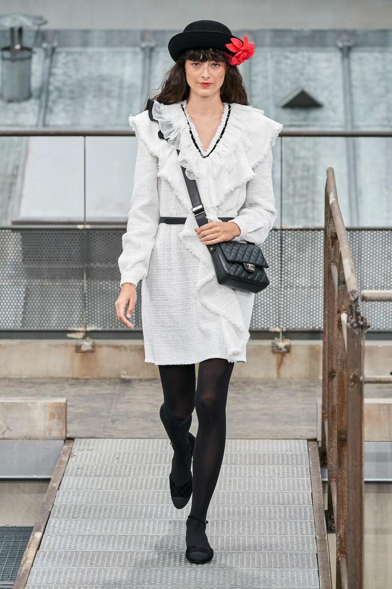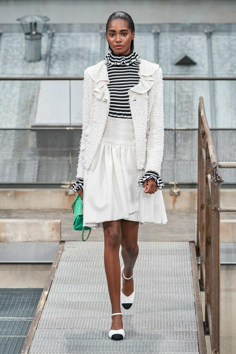 Aunque Karl ya no está, sí que el espíritu de Chanel se mantiene y Virgine Viard -la que fuera la mano derecha del Kaiser durante más de 30 años- sabe como hacerlo a través de los tejidos como el tweed, la enorme bisutería o el binomio blanco y negro.