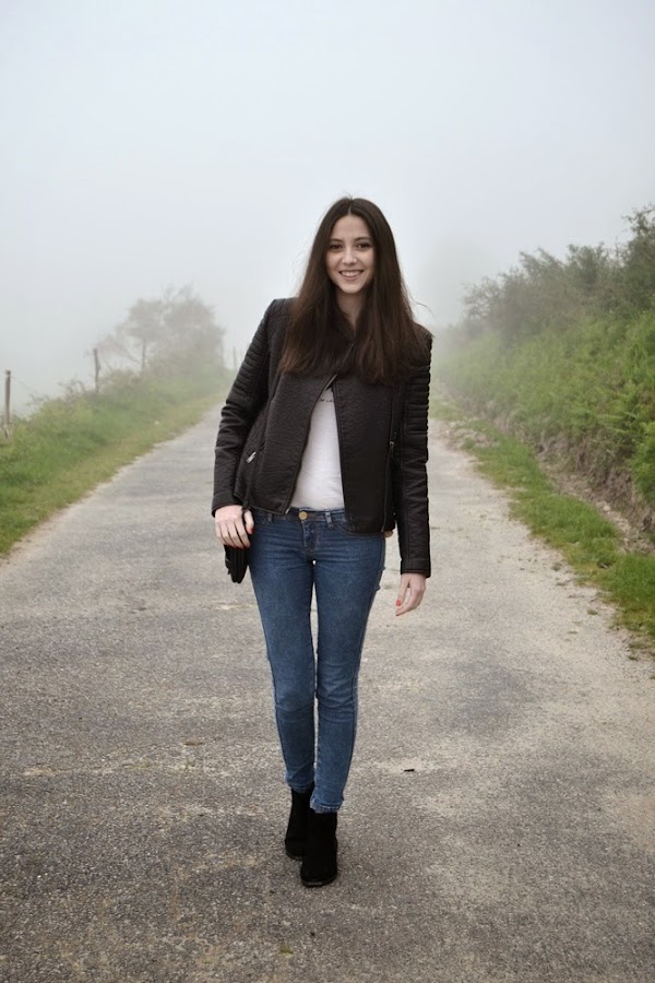 Cuando parecía que la primavera había llegado a Galicia después de unos días de sol, la lluvia y el frío ( y la niebla ) volvieron a hacer acto de presencia y, por tanto, también las cazadoras, chaquetas gordas y botas... El outfit de hoy es muy parecido a uno que os enseñé hace no mucho pero cambiando el jersey por la chaqueta y la camiseta (aquí). Siento que sea un post tan cortito; os dejo con las fotos y nos leemos pronto, ¡Mil besos!