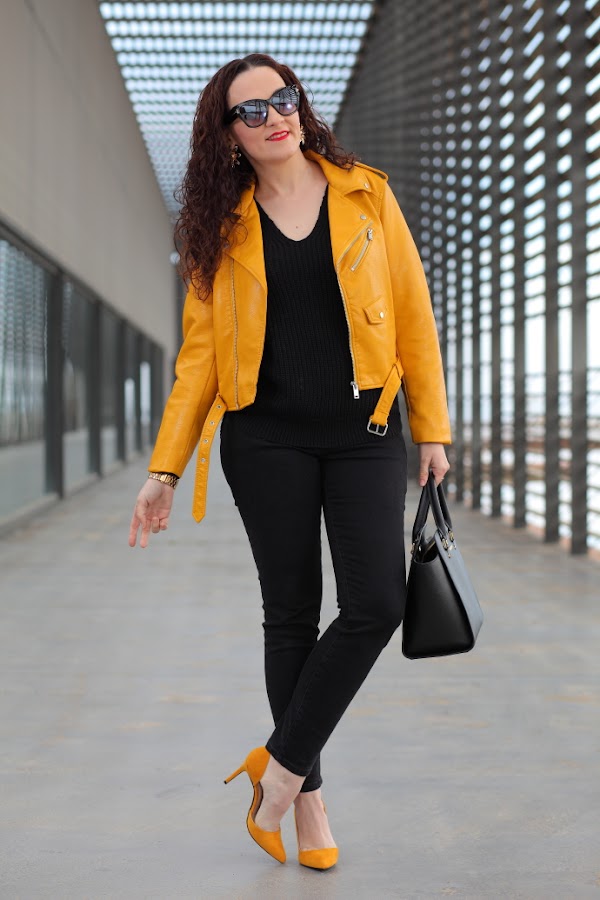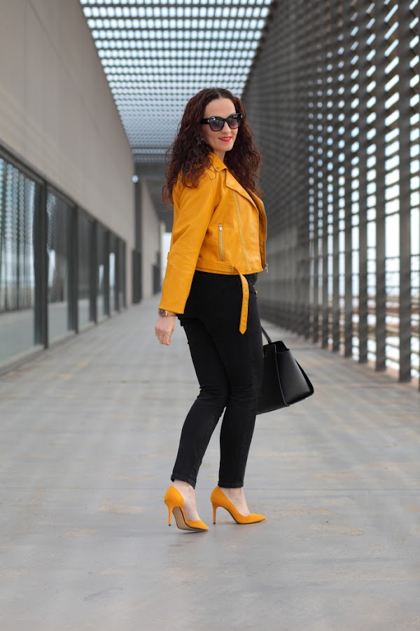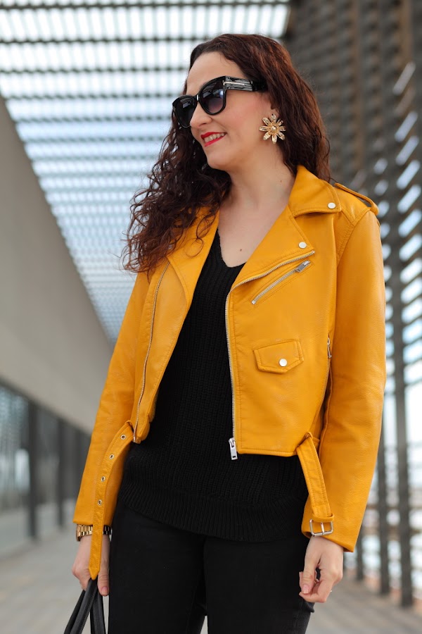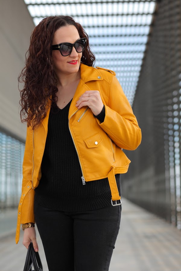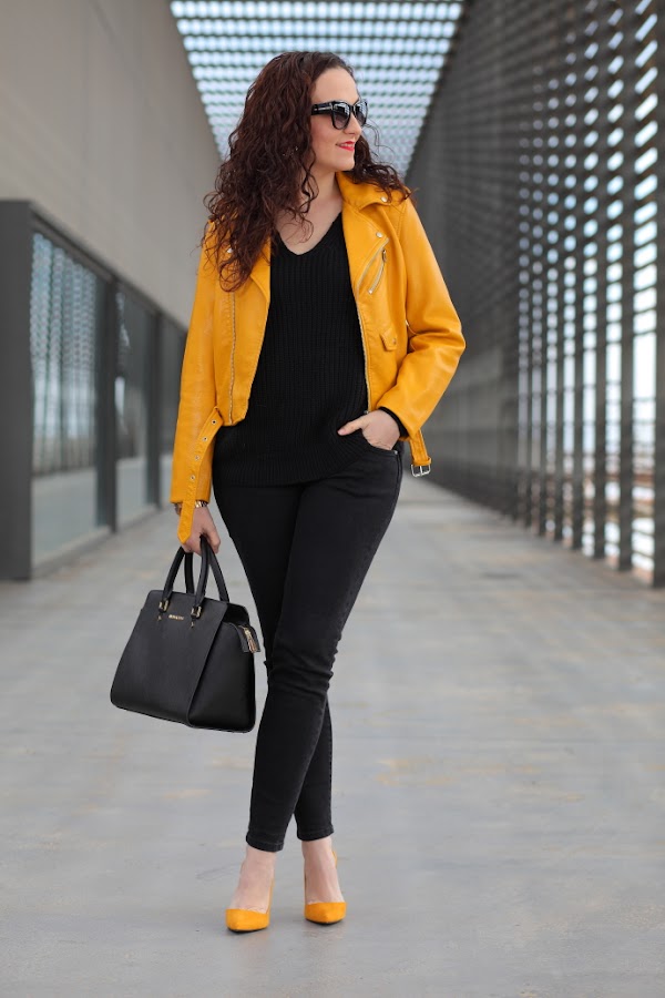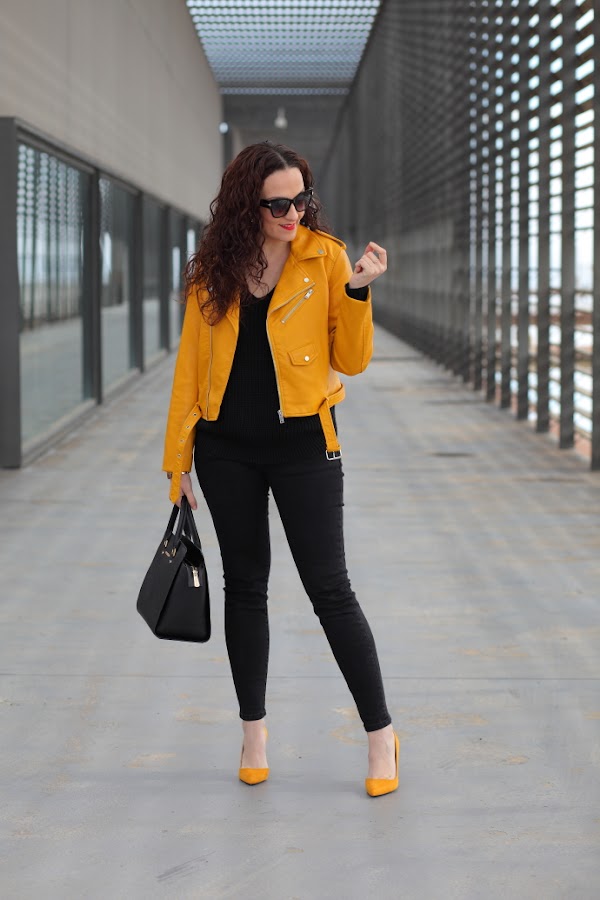 Empiezo la semana con un look que me chifla, como veis llevo la famosa biker amarilla de Zara, que seguro ya habréis visto en bastantes looks. Hay prendas que cuando las veo hasta la saciedad me canso de ellas y opto por no comprarlas, como me pasó con la chaqueta bordada de Zara. Pero esta vez ha sido diferente, con lo que me gusta el amarillo mostaza y lo bonita que me parece, no me ha importado. Además, es de esas prendas que las ves mucho por la red pero que luego no ves por la calle, hasta la fecha todavía no me he cruzado con nadie que la llevé. La combiné con un total black con jersey de punto y jeans, al que le añadí mis nuevos zapatos de tacón también de color amarillo mostaza.