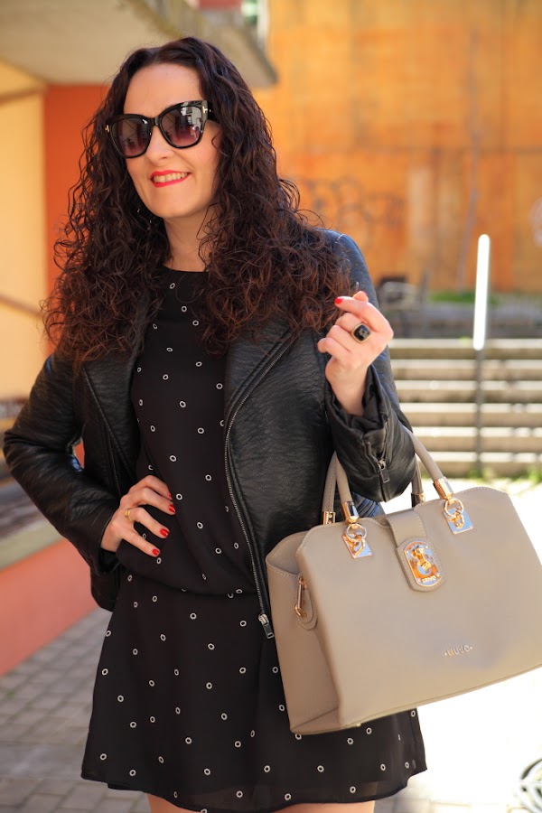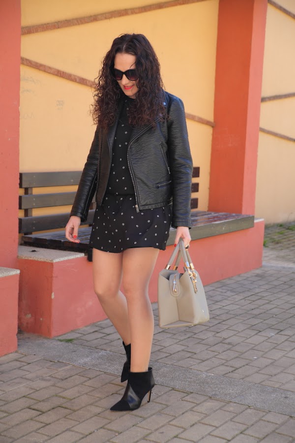 Chaqueta/Biker Jacket: Zara. Vestido/Dress: H&M. Anillo/Ring: Ramiro Joyeros . Botines/Ankle Boots: Zara. Bolso/Bag: Liu Jo.