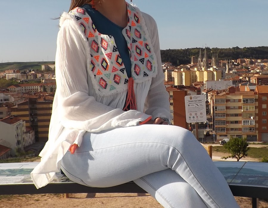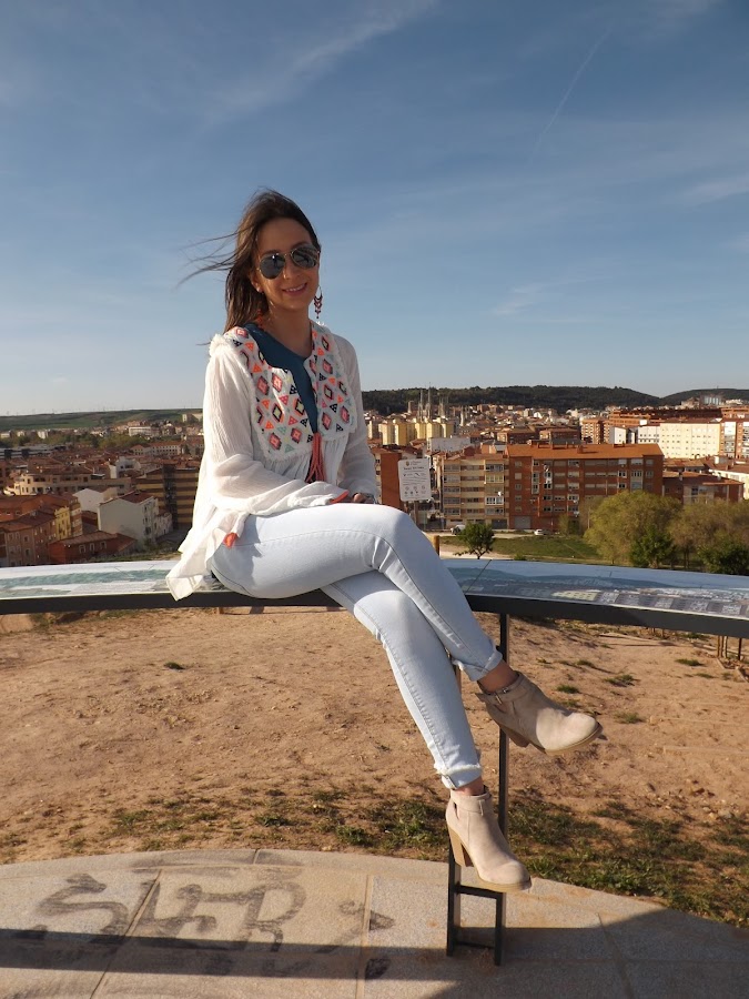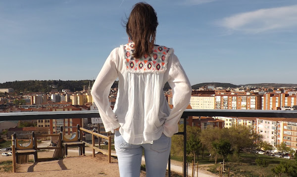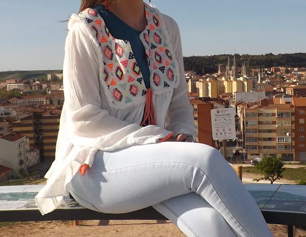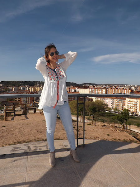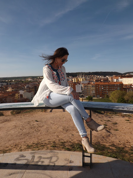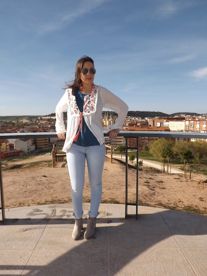 After the well-known jacket of last summer from Zara, now arrives in low cost version. It´s from Carrefour. I combined it with a nes clear jeans from Stradivarius, taupe booties and blue top.