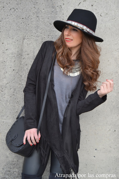Hace una semana ya os enseñaba lo que será una de las prendas más vistas de esta primavera, una chaqueta de flecos de antelina y hoy os enseño la versión en cuero, y es que fue ver la colección de María Escoté para el otoño/invierno 2014/2015 y enamorarme de las cazadoras de cuero con flecos tan impresionantes que sacaba en su desfile. Así que, como no me puedo permitir una de María Escoté, me com ...