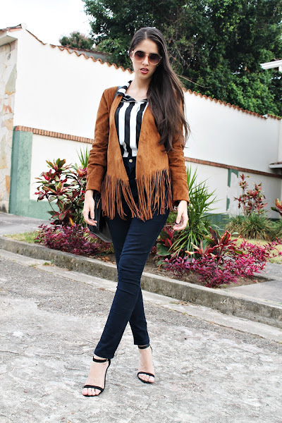 El outfit que les muestro hoy combina dos tendencias que me encantan: Los flecos y las rayas. Y hablando de rayas... Este look forma parte del RetoRayas de la comunidad de FASHION BLOGGERS VENEZUELA. Es una comunidad creada por bloggers venezolanos que comparten estilo, moda y tendencias en todo el mundo.