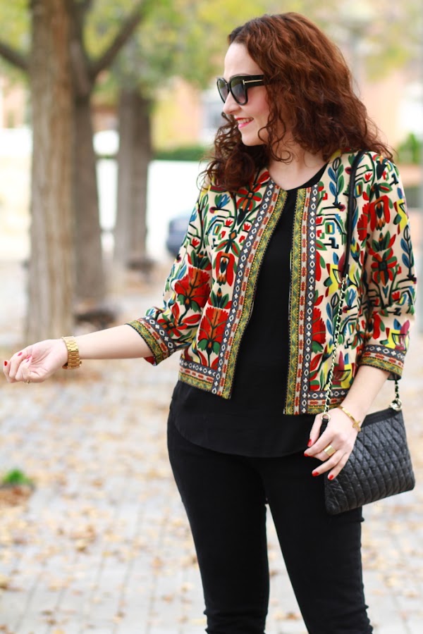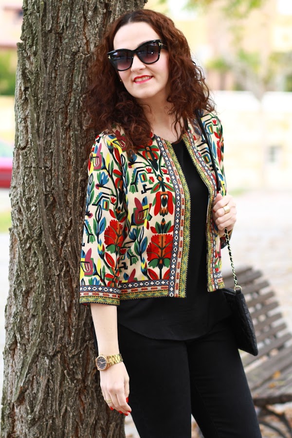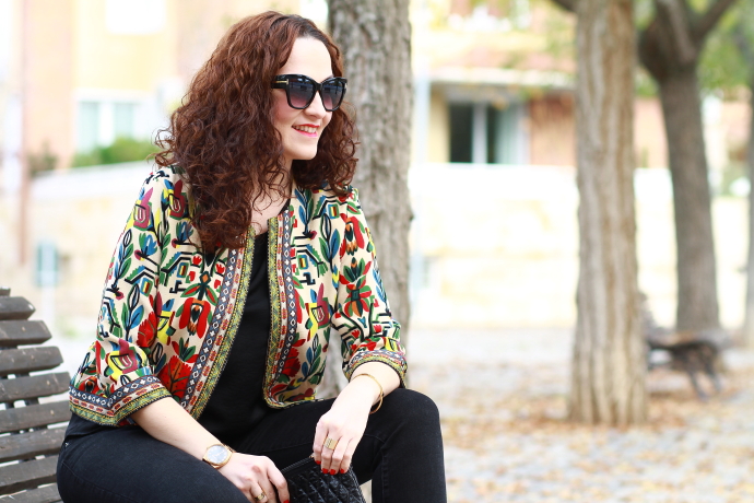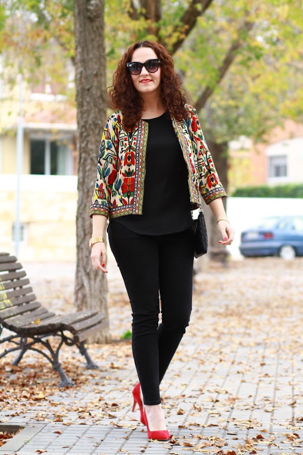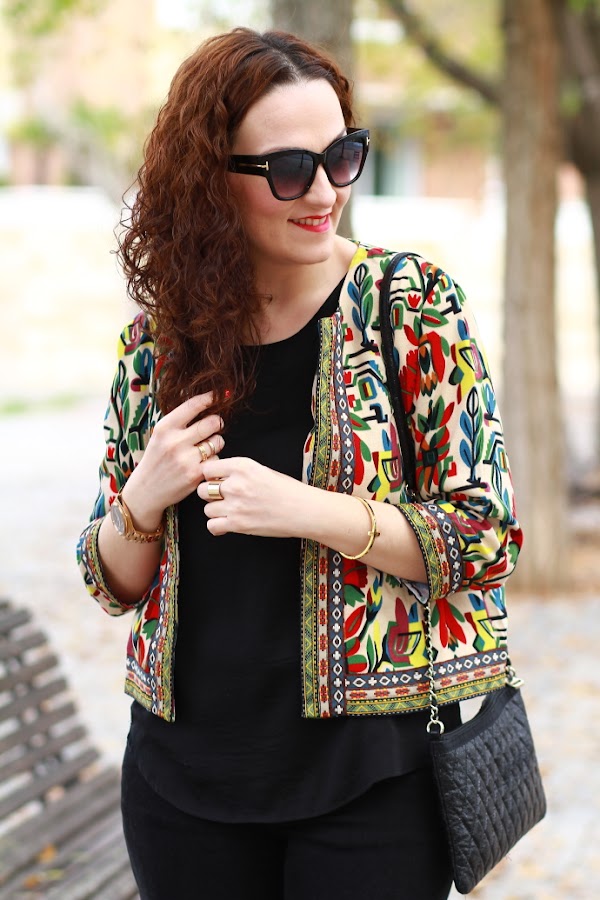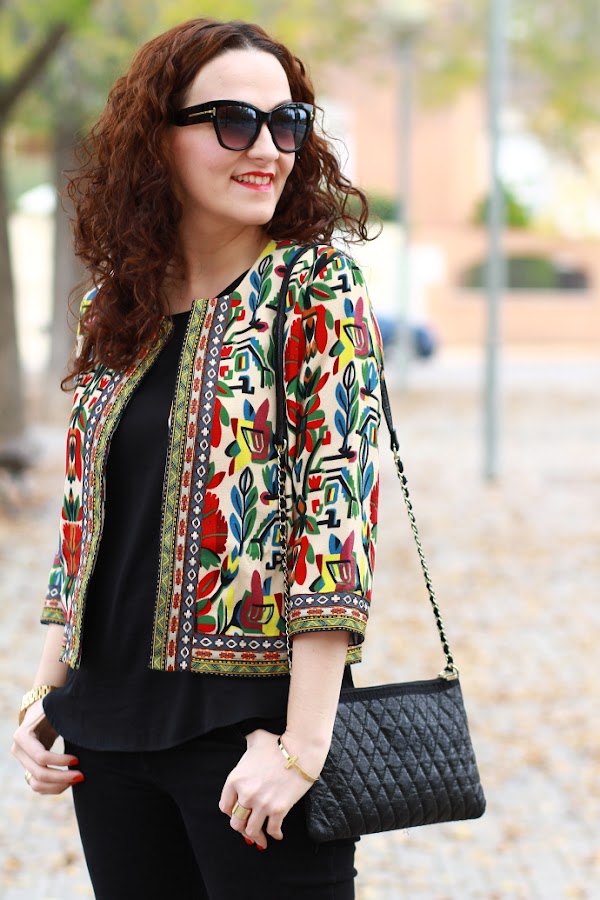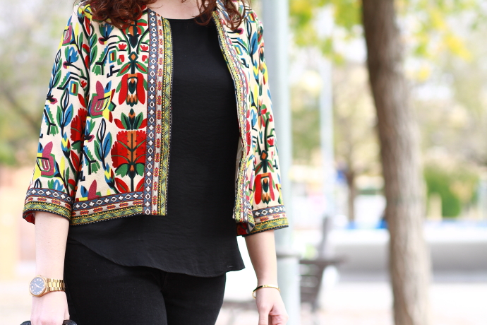 Este sábado nos fuimos de cena de chicas con mis amigas. Llevábamos mucho tiempo planeándola pero por diferentes motivos se había ido post poniendo, hasta que este finde, por fin, pudimos cuadrar las agendas para estar todas. Como era de esperar pasamos una noche genial llena de risas y buenos momentos que espero volvamos a repetir pronto. En cuanto al look que llevé, por suerte, el viernes me llegó a casa esta preciosa chaqueta étnica que me pareció tan bonita que enseguida pensé en ella para la cena. Creé un look especial con ella en el que le cedí todo el protagonismo combinándola con un total look negro con pitillos tobilleros y top básico.
