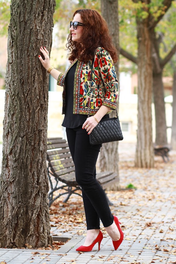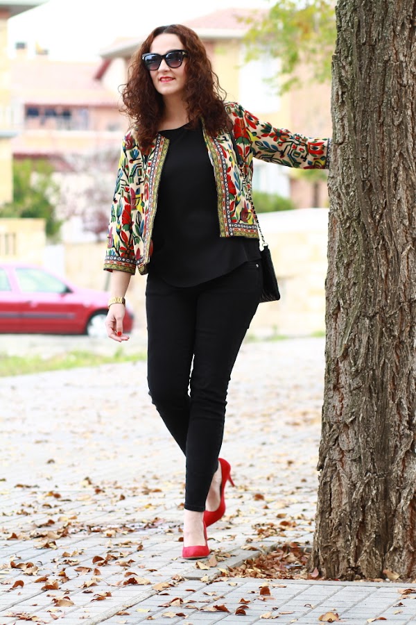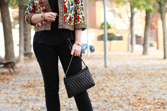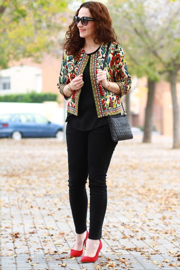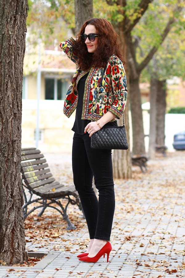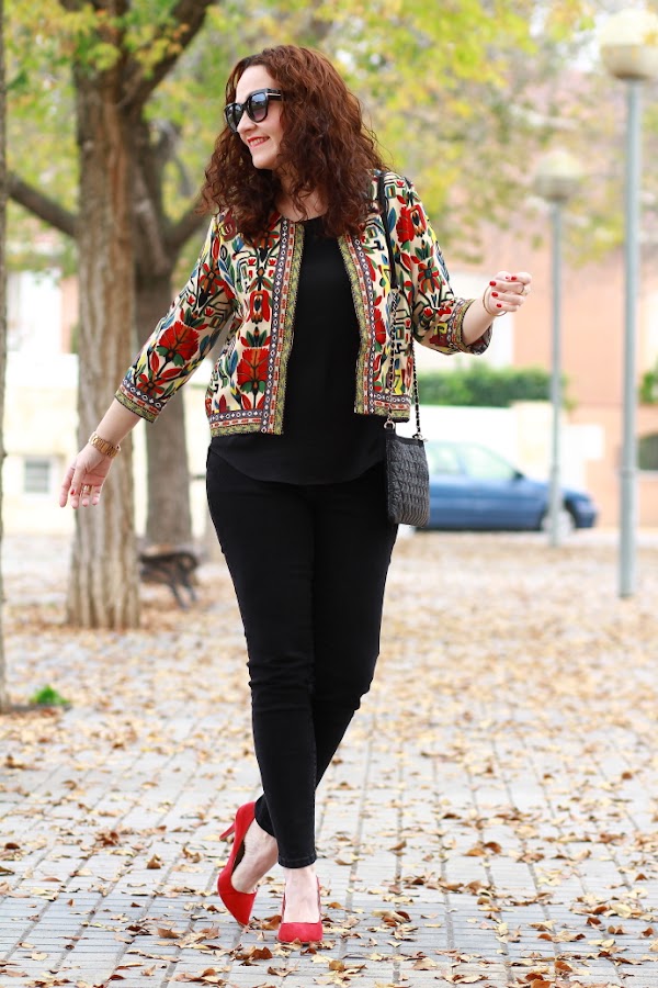 Este sábado nos fuimos de cena de chicas con mis amigas. Llevábamos mucho tiempo planeándola pero por diferentes motivos se había ido post poniendo, hasta que este finde, por fin, pudimos cuadrar las agendas para estar todas. Como era de esperar pasamos una noche genial llena de risas y buenos momentos que espero volvamos a repetir pronto. En cuanto al look que llevé, por suerte, el viernes me llegó a casa esta preciosa chaqueta étnica que me pareció tan bonita que enseguida pensé en ella para la cena. Creé un look especial con ella en el que le cedí todo el protagonismo combinándola con un total look negro con pitillos tobilleros y top básico.