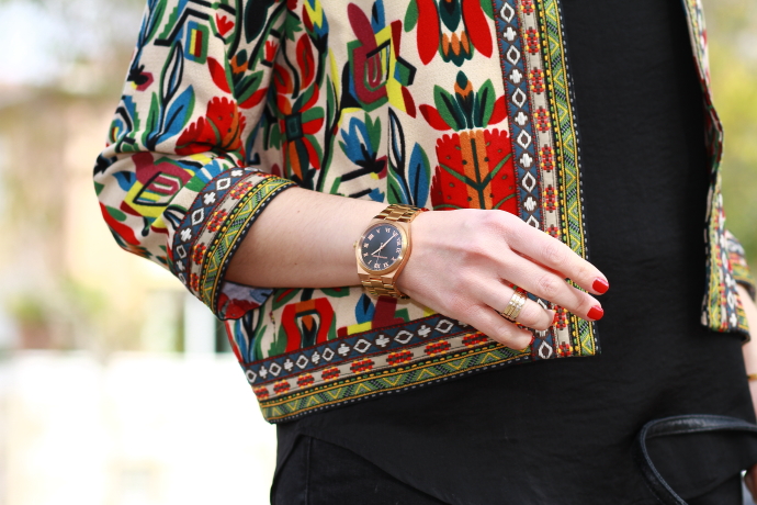 Chaqueta/Jacket: Dresslink disponible aquí/available here. Top: Stradivarius. Jeans: Zara. Pulsera/Bracelet: Regalo/Present. Anillo/Ring: ¿?. Reloj/Watch: Michael Kors vía Ramiro Joyeros. Zapatos/Shoes: Bershka. Bolso/Bag: Mango.