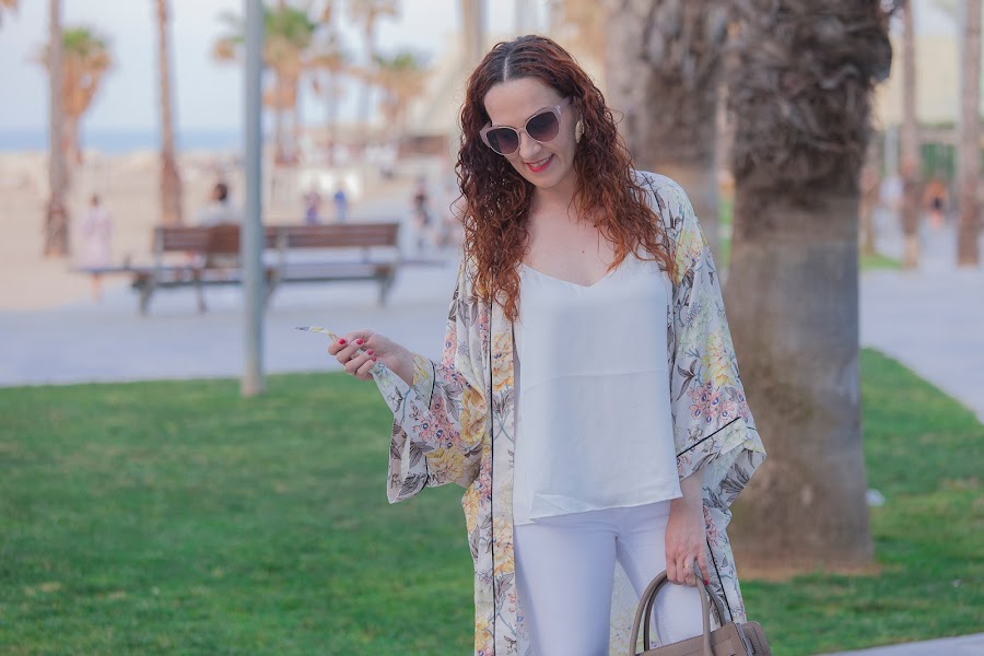 Reconozco que a estas alturas ya he perdido la cuenta de los kimonos que tengo. Es un tipo de prenda que me encanta vestir sobre todo para el verano. Además, aunque todas las temporadas se dejan ver, este verano han llegado con más fuerza y... ¡yo encantada!. Uno de los últimos que he comprado es este blanco con dibujo en la espalada, y lo suelo combinar con top azul marino y pitillos como os lo e ...