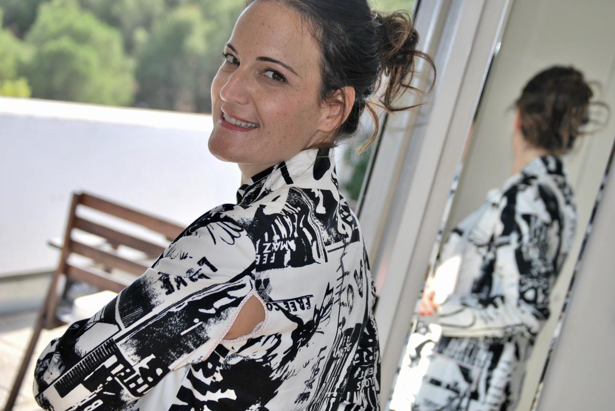La combiné con vaqueros que queda genial, pero también la he combinado con un pantalón de pinzas clásico negro y un súper tacón y más que genial!! Otro día que me lo ponga, me hago alguna fotillo y te la enseño, ya verás como te gusta la combinación de mi chaqueta molona…