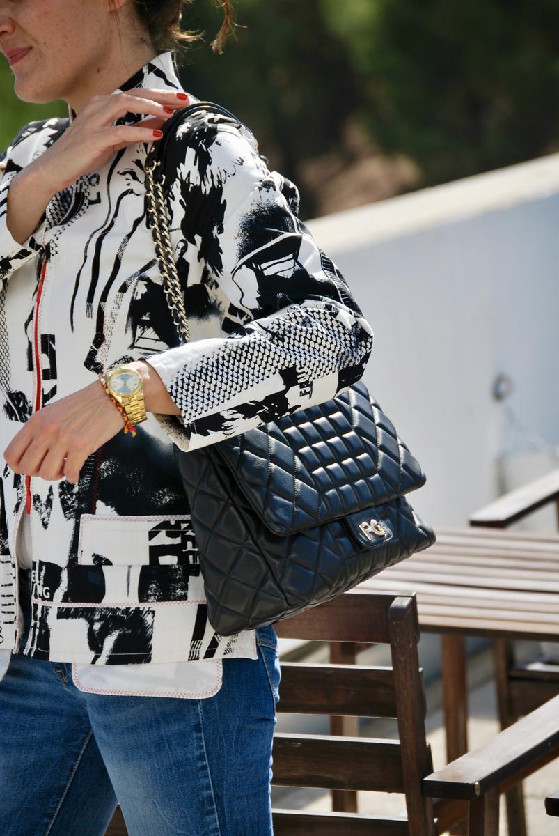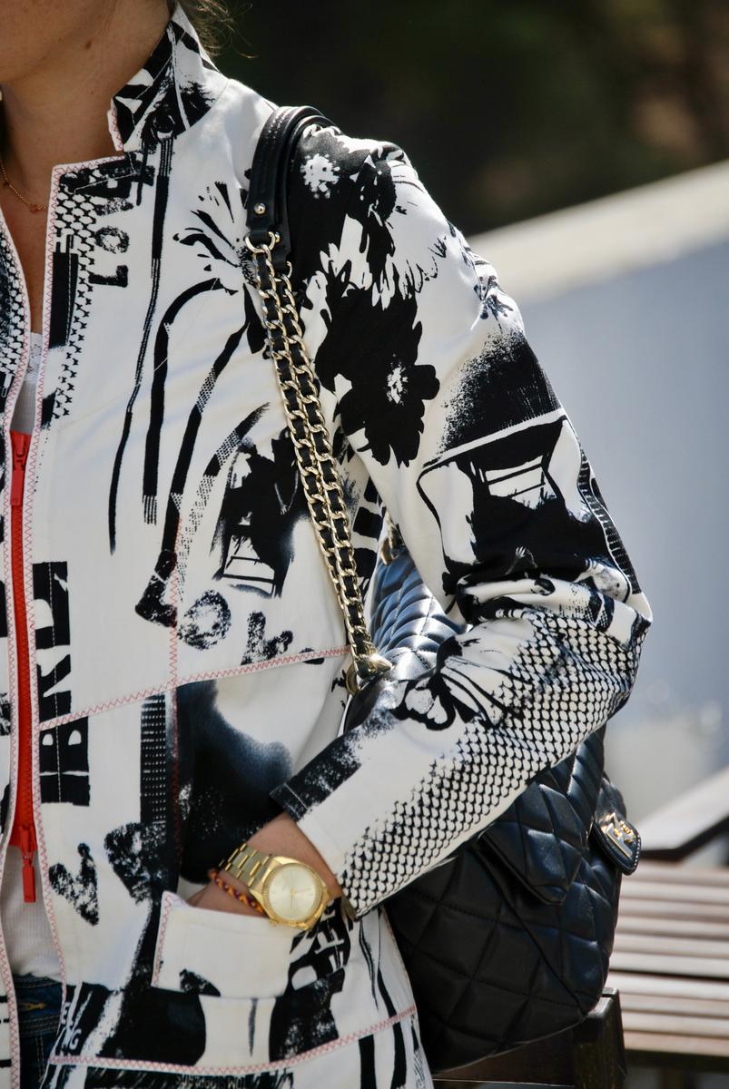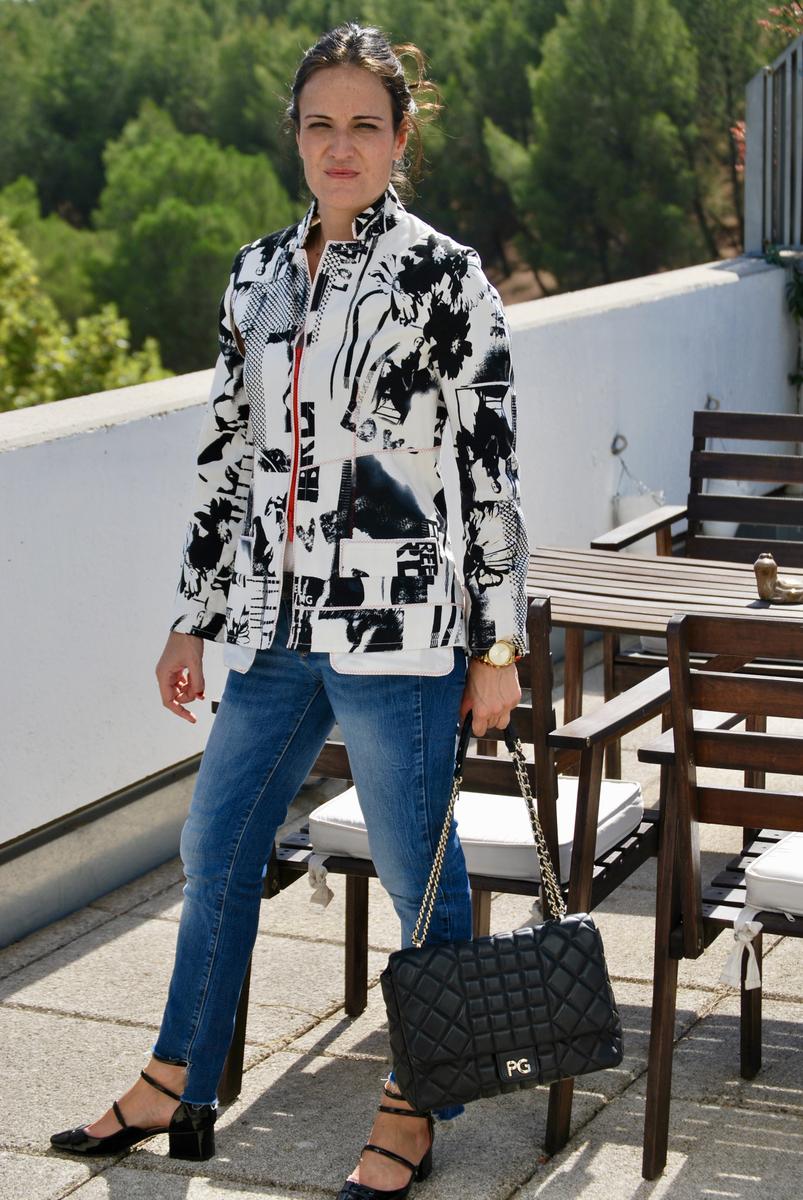 Chaqueta: Purificación García Camiseta: Massimo Dutti Vaquero: Zara Zapatitos: Zara Bolso: Purificación García