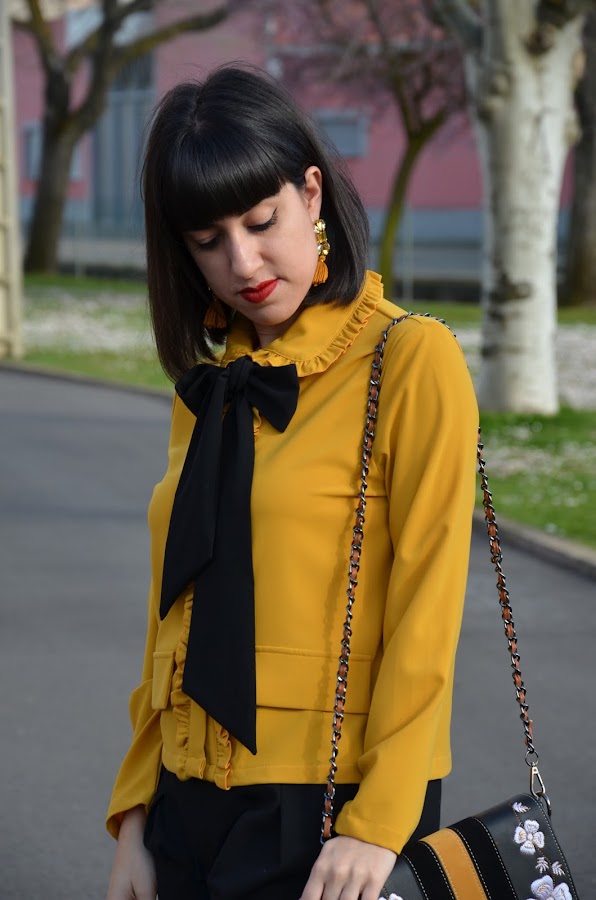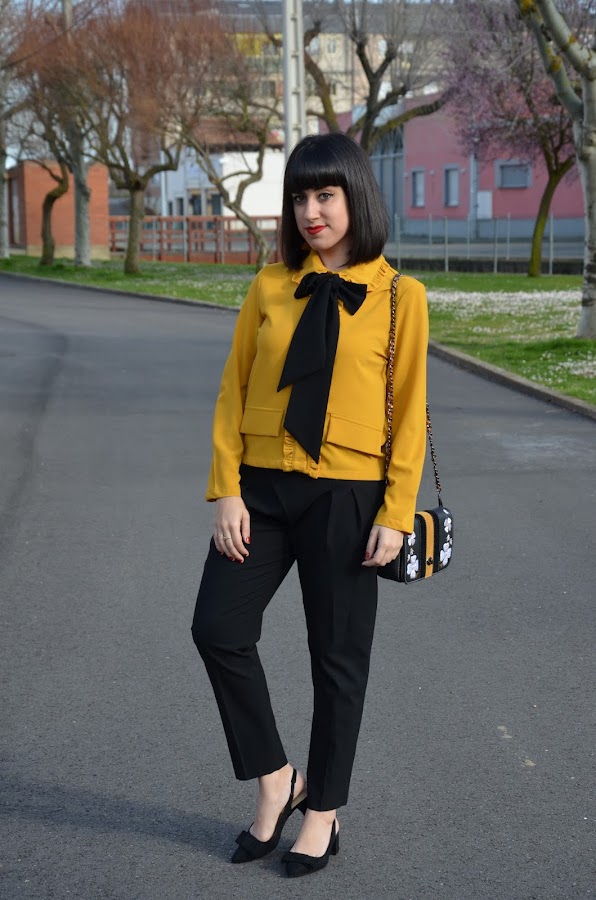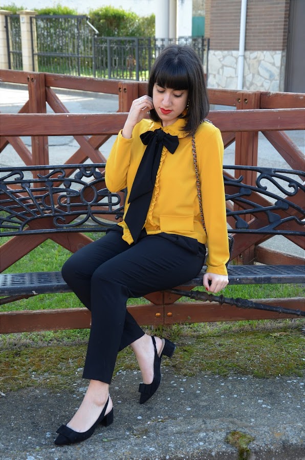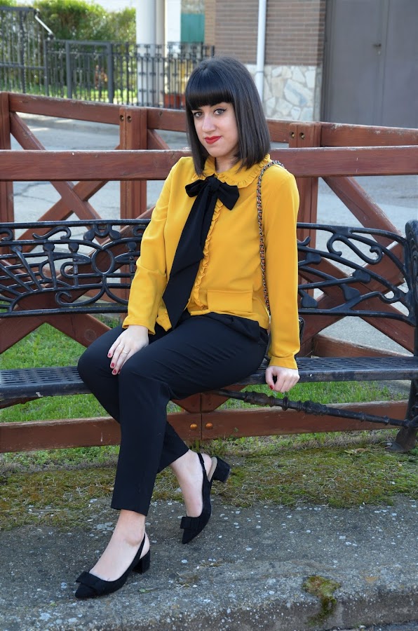 La he combinado con pantalones negros de corte para darle un toque mas elegante, pero con unos simples vaqueros también queda de maravilla, es una prenda muy versátil.