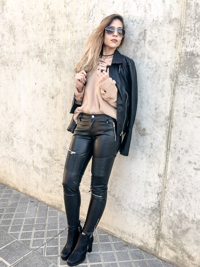 Today I bring you a very biker look and very rock. I love the leather garments and the protagonists of today is, without a doubt, my leatherette biker pants from ZARA, with detail of zippers. Very comfortable and warm !!