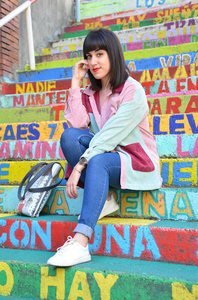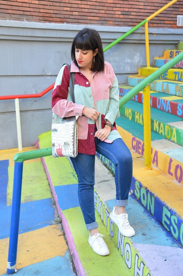 La protagonista es esta chaqueta multicolor de Shein. Es una especie de sobrecamisa de pana ideal para los días de entretiempo. Tiene ese estilo vintage que tanto me gusta.