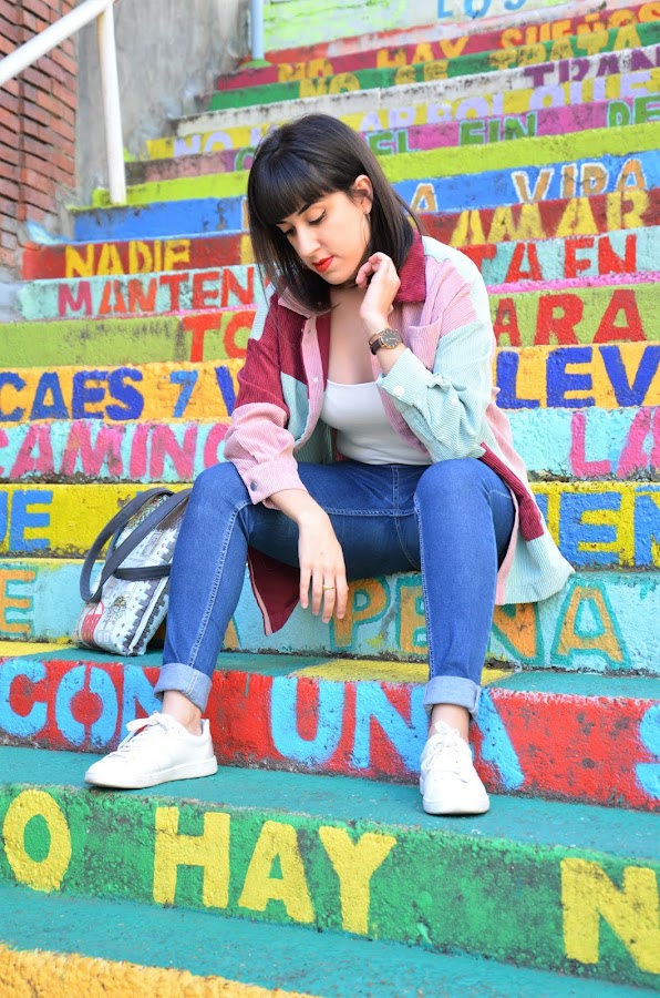 El lugar que escogimos para hacer las fotos es la escalera de la vida, unos cuantos peldaños con mensajes de esos que sacan sonrisas.
