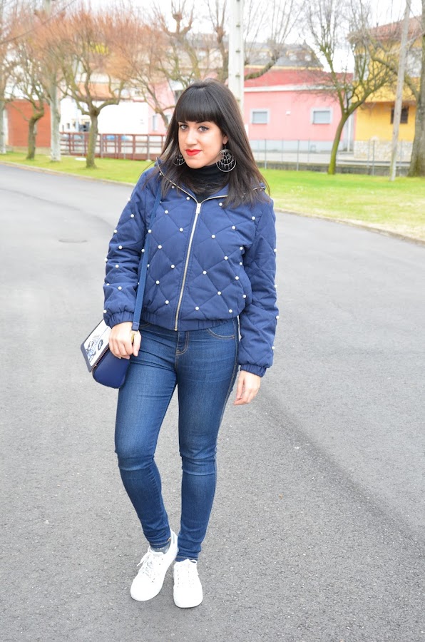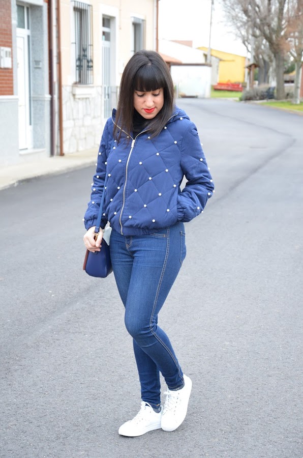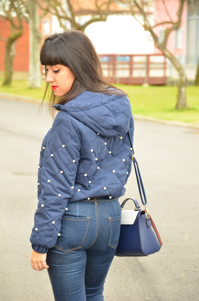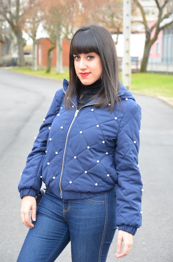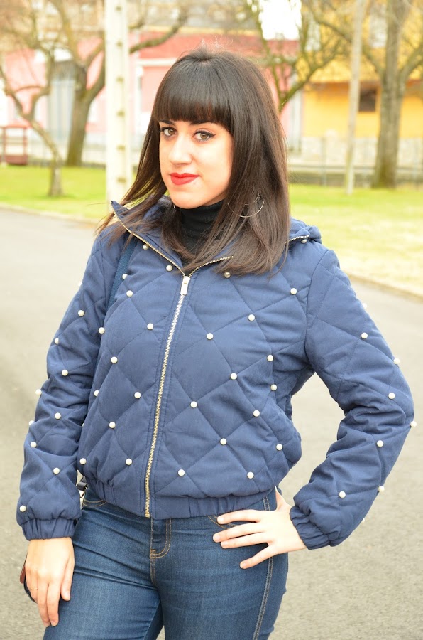 Esta que hoy os muestro se ha convertido en mi cazadora favorita de este invierno, tiene un color precioso, y el toque que le dan las perlas y la capucha me encanta. Es realmente cómoda.