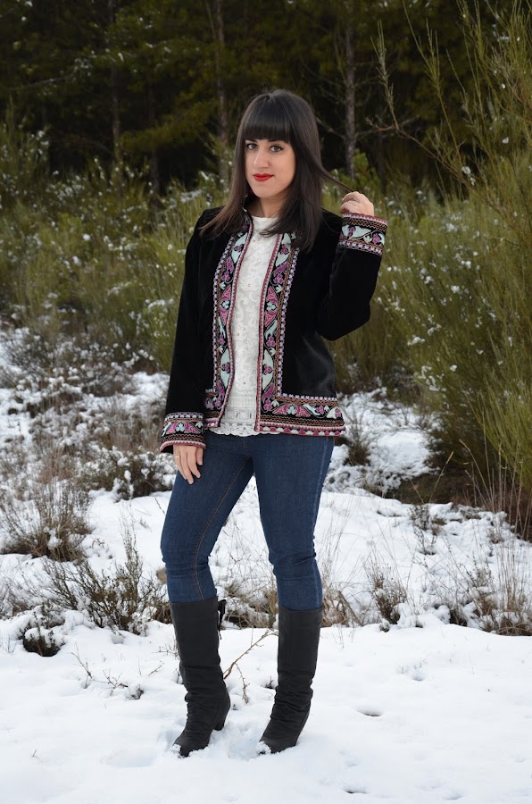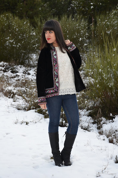 He estado esperando y esperando y cuando iba a desistir al fin nevó y así os puedo enseñar la preciosidad de chaqueta de Savage Culture de la colección otoño-invierno con una bonita estampa invernal.
