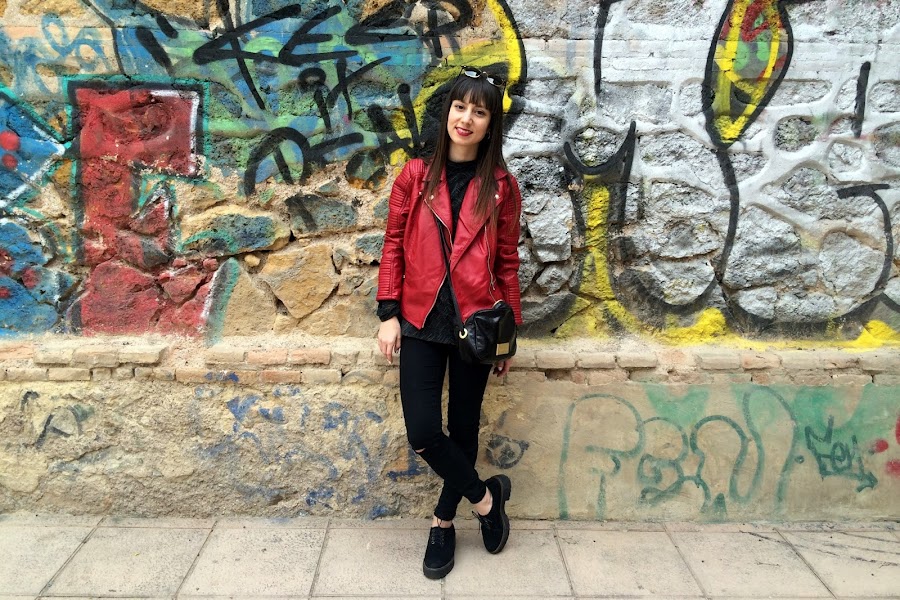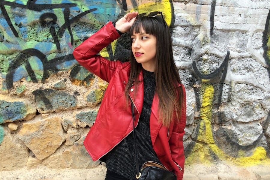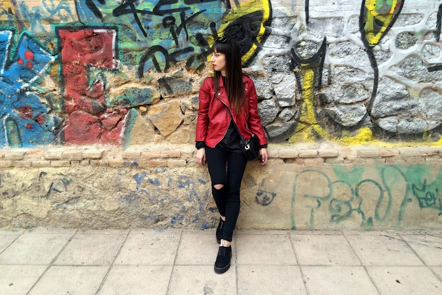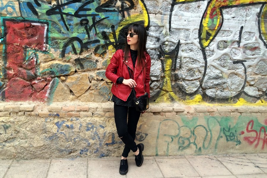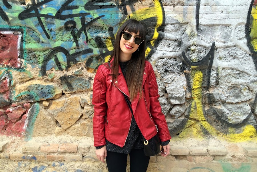 ¿Qué tal va la semana? Bueno, pensar que ya es ¡Viernes! Que ganas, ¿no? Al menos yo sí, esta noche me iré de concierto a ver "La habitación roja". ¿Alguien los conoce? Espero que sí, sino os ánimo a escucharlos, ahora abajo dejare una de mis canciones favoritas del nuevo disco. En fin, hoy vengo a enseñaros la biker roja que me compré en Madrid y que no me quito de encima (Bien saben mis hermanas). Llevaba desde el principio de otoño buscando una biker roja pero no encontraba ninguna que me gustará y entonces me gusto la amarilla de zara que también está en granate, pero creo que está ya demasiado vista ¿verdad? Así que cuando estuve por Madrid y vi esta chaqueta me enamoro porque además es muy de mi estilo. Es muy similar a la biker que tengo en negra de zara y vamos, sí... Me encanta. Espero que a vosotras también os guste. Mucha gente me dice que tal vez no le pueda sacar mucho partido porque es difícil de combinar pero yo no estoy de acuerdo y ya os la enseñaré más veces con más looks que tengo pensados. Aquí os dejo las fotos. ¡Muchos besos!