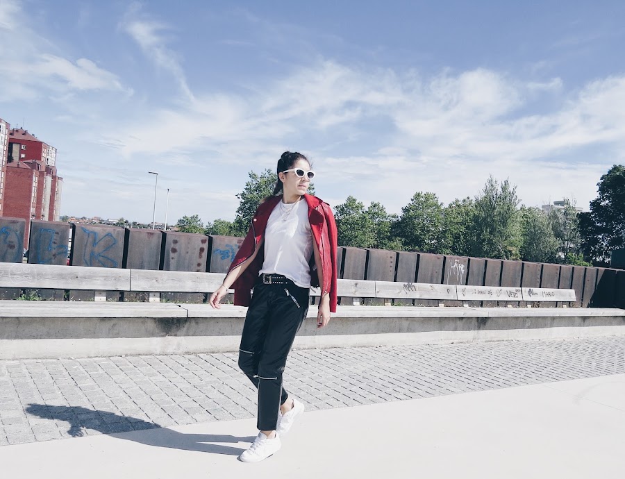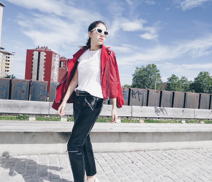 Esta temporada tanto el rojo como el vinilo están a la orden del día, y si le sumamos estas gafas de sol estilo retro, se crea un outfit perfecto para la primavera. Me siento muy femenina, con el toque de moda y perfecta para llevar estas gafas con un montón de looks sin dejar de ir estilosa.