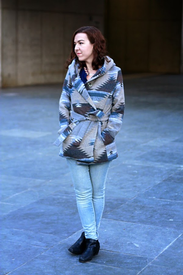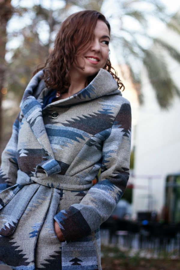 El estampado étnico es uno de mis favoritos, como habréis podido comprobar en unos cuantos looks pero.... no tenía ningún abrigo, así que después de buscar y buscar, decidí quedarme con este, por los colores creo que lo voy a llevar un montón!