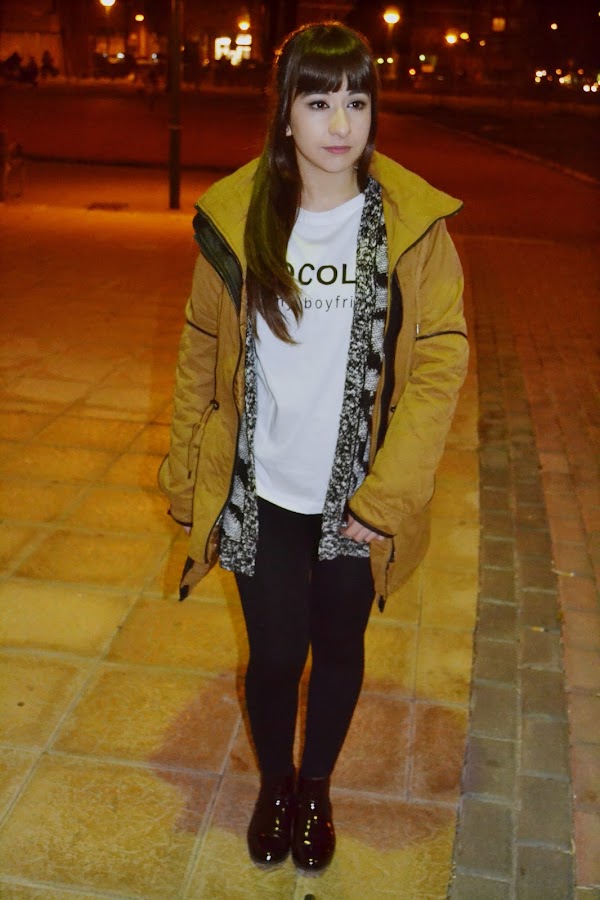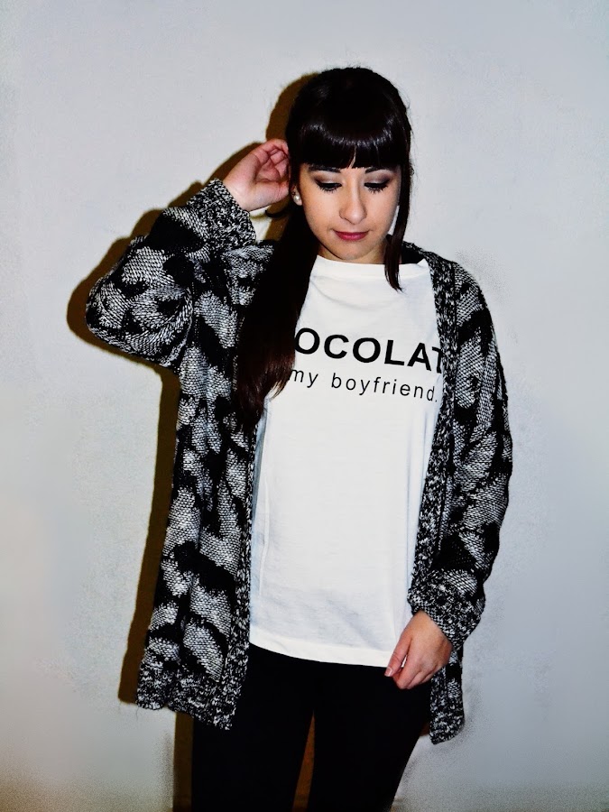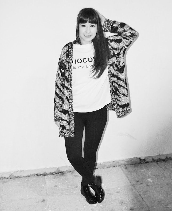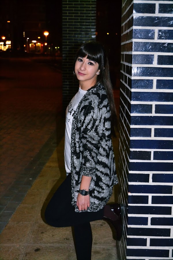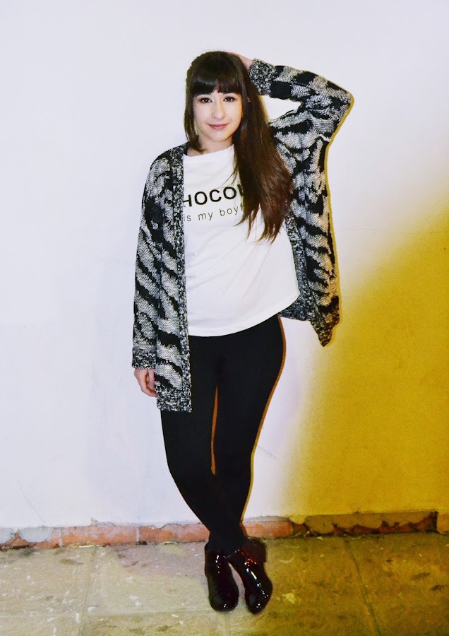El cardigan le compré en las rebajas , que bajé el primer día y fue una batalla por conseguir prendas muy a lo estadounidense, y me encanta, además estoy segura de que le usaré muchísimo. Y la camiseta también es de rebajas y me gustó mucho por su frase y porque es muy combinable. El resto del outfit se compone de leggins negros, mis queridos botines granates que últimamente no me quito y una buena cazadora para no pasar frío.