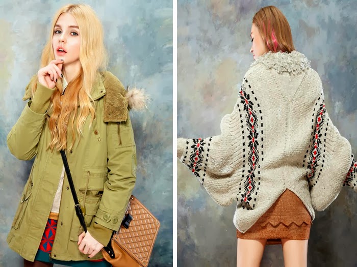 1. ELF SACK Double Breast Button Tweed Coat , 2. ELF SACK High Waisted Skater Dress; 3. ELF SACK V-neck Angola Jumper; 4. ELF SACK High-waisted Jacquard Skirt; 5. Metal Buckle Cut Out Boots; 6. Pointed High Heeled Boots; 7. ELF SACK Hooded Parka Jacket ; 8. ELF SACK Batwing Sleeves Cardigan With Fluffy Collar