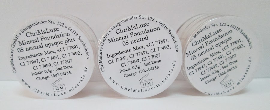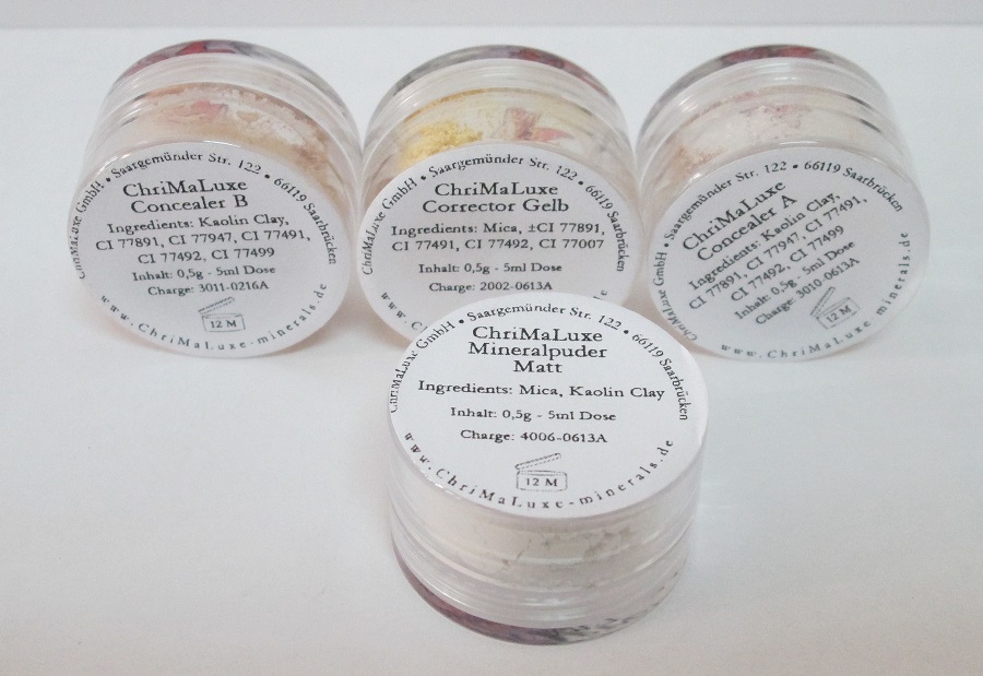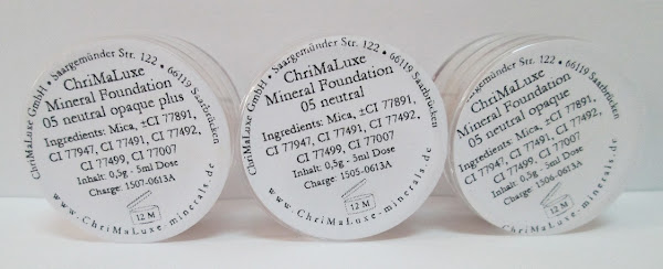 Hace varios años, conocí esta marca de maquillaje mineral, jejeje, pero no he podido evitar, en probar algunos productos más, de ella, para recordar que tal era la calidad de su polvito tan fino. Para las que no la conozcáis, os comento de que "ChriMaLuxe Minerals", es una marca alemana, de maquillaje mineral, que tiene una calidad-precio muy razonable. Aunque lo mejor de ella, es que podéis pedir muestras de sus productos, por tan sólo 1,95€, las cuales, vienen en tarritos (con agujeritos), de 0,5 gramos, que da para varios usos.