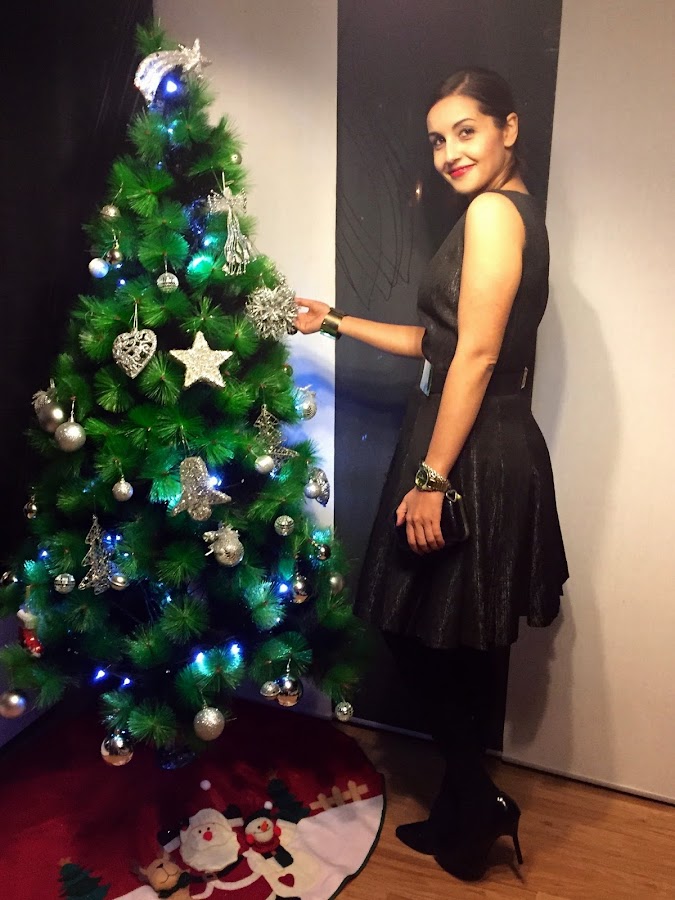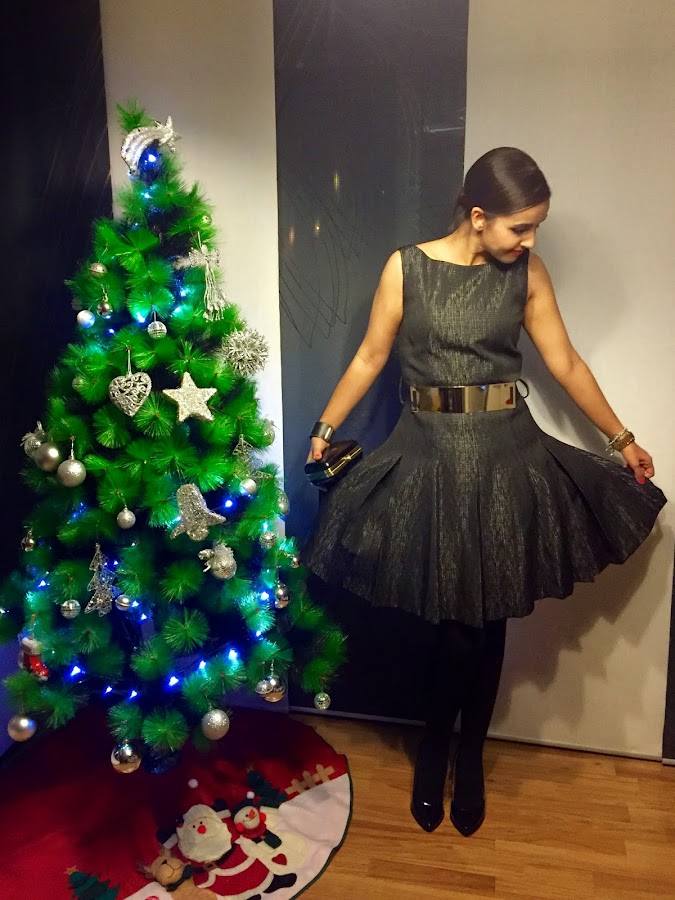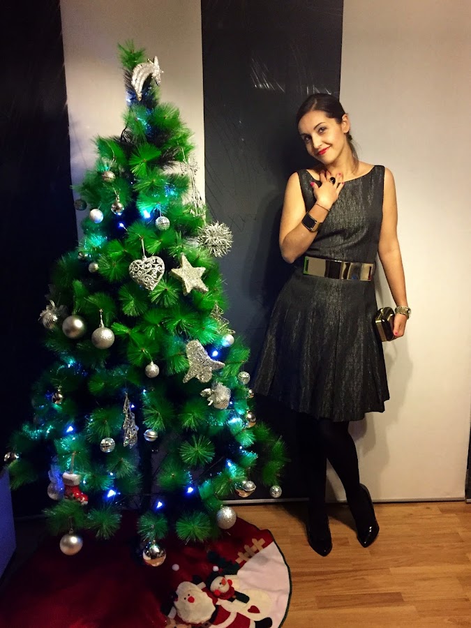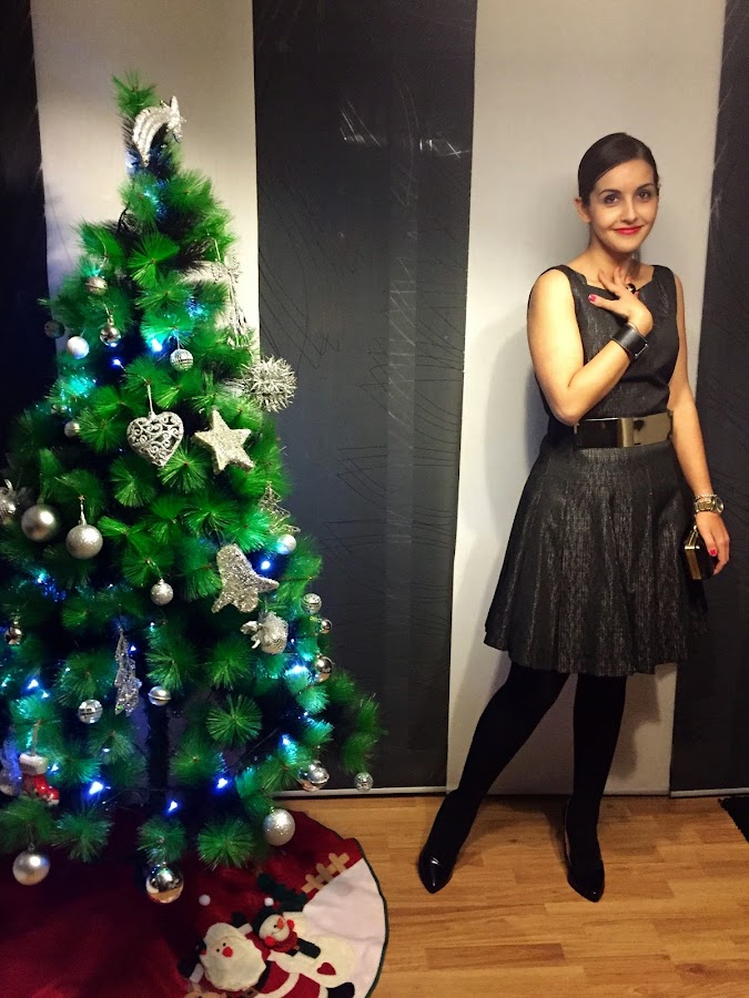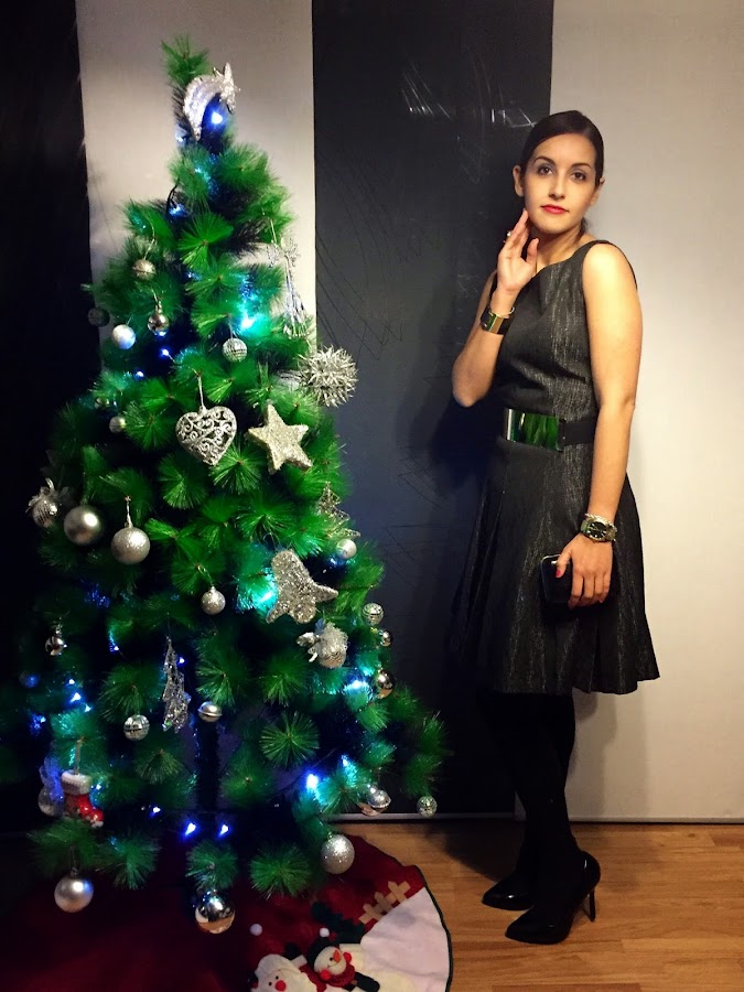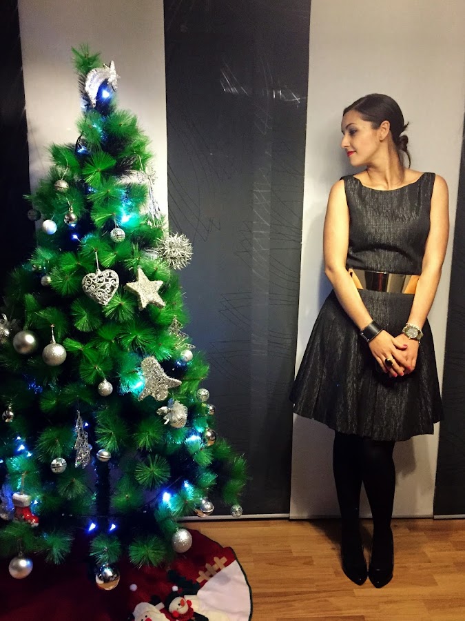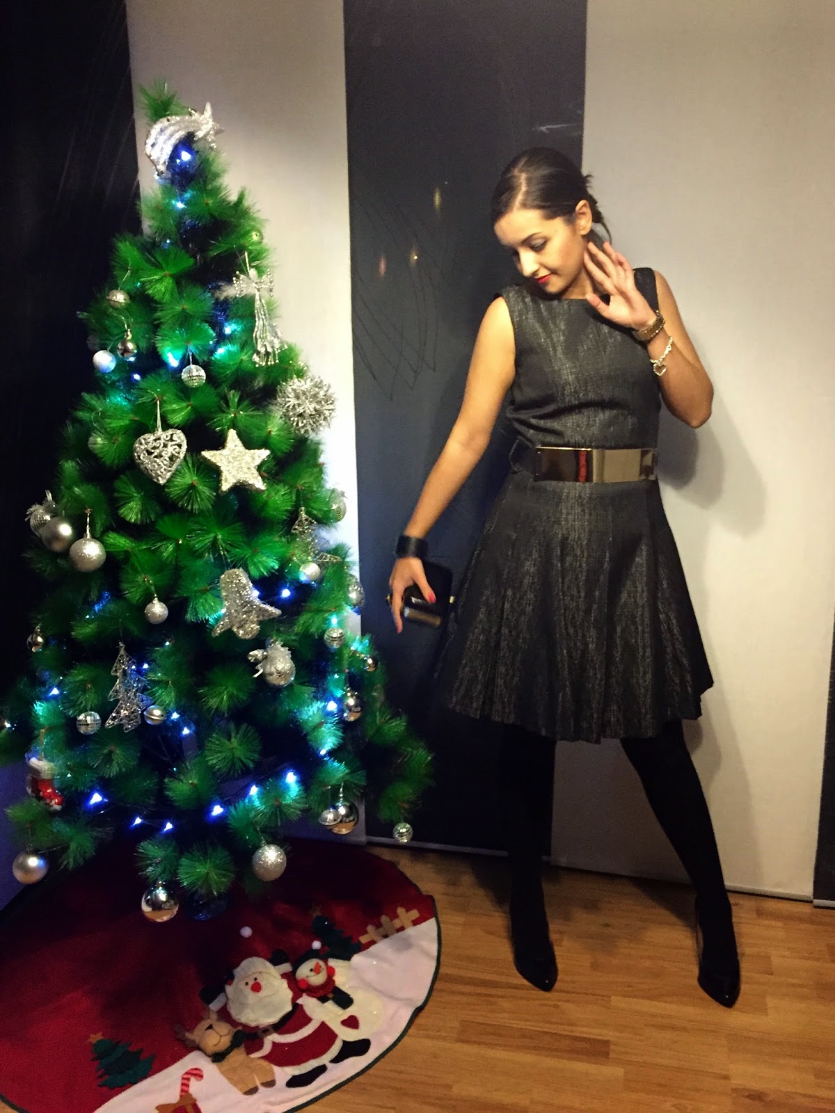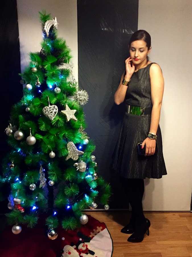 Good night sweeties! Today I show a party outfit that it"s perfect for your business dinner or familiar dinner of this Christmas . In the outfit of the day, I wore a grey dress with little touch of silver. To complete the outfit, I put a gold belt, a black hand bag and black stilettos. A simply and chic outfit that it will make you shine in this Christmas.