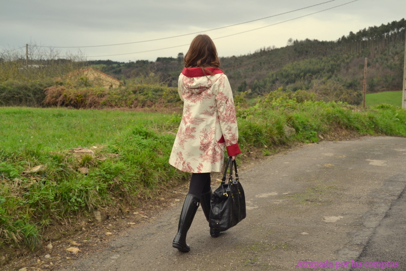 La verdad que llevamos unos días que la lluvia no nos da tregua así que he aprovechado para no parar de poner mi nuevo chubasquero toile de jouy de RO-COCOA. El estampado Tolie de Jouy, más conocido como Toile, es uno de los mas antiguos y se pone de moda en Europa durante el s.XVIII siendo Mª Antonieta una de sus más fervientes seguidoras llegando incluso a crear tendencia. Su nombre significa Tela de Jouy y debe este nombre al pueblo del norte de Francia en el que se comenzó a crear.