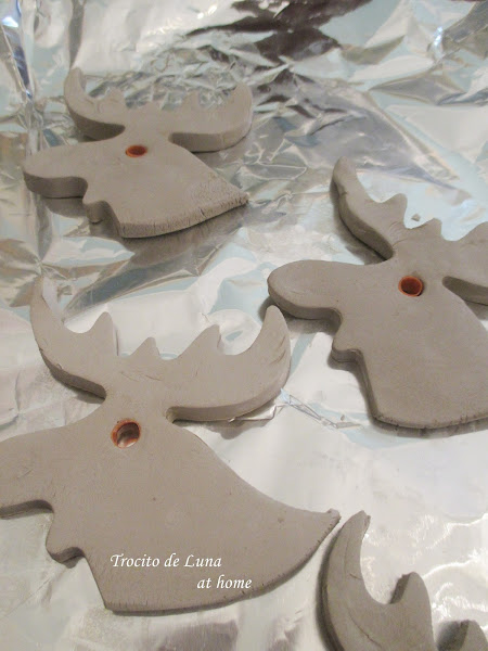 A su vez, con un cortador de galletas de reno y pasta, hice también unos colgantes...