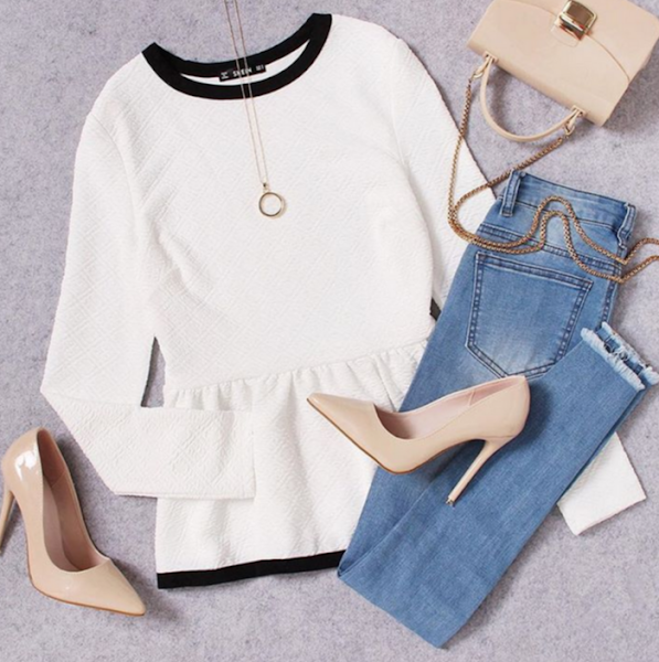 Me encanta este conjunto, este top peplum da la elegancia justa, que combinado con un pantalón vaquero, le quita esa seriedad y le aporta mucho estilo y personalidad.