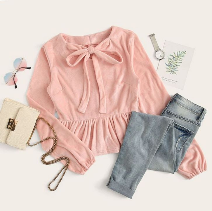 El Lunes quiero estrenar esta blusa tan chula es de terciopelo rosa y queda muy original con el lacito en la parte del cuello, lo combinaré con unos vaqueros.