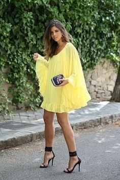 ¡Hola familia! Otra vez ha cambiado el tiempo y os traigo un look muy fresquito y a la vez cómodo. Se compone de un vestido amarillo de la web AJUARELA. Es holgadito y termina en una falda con un vola ...