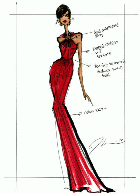Para terminar os dejo con el boceto del vestido de @JasonWu que el diseñador publicó en su twitter y he encontrado publicado en la red.