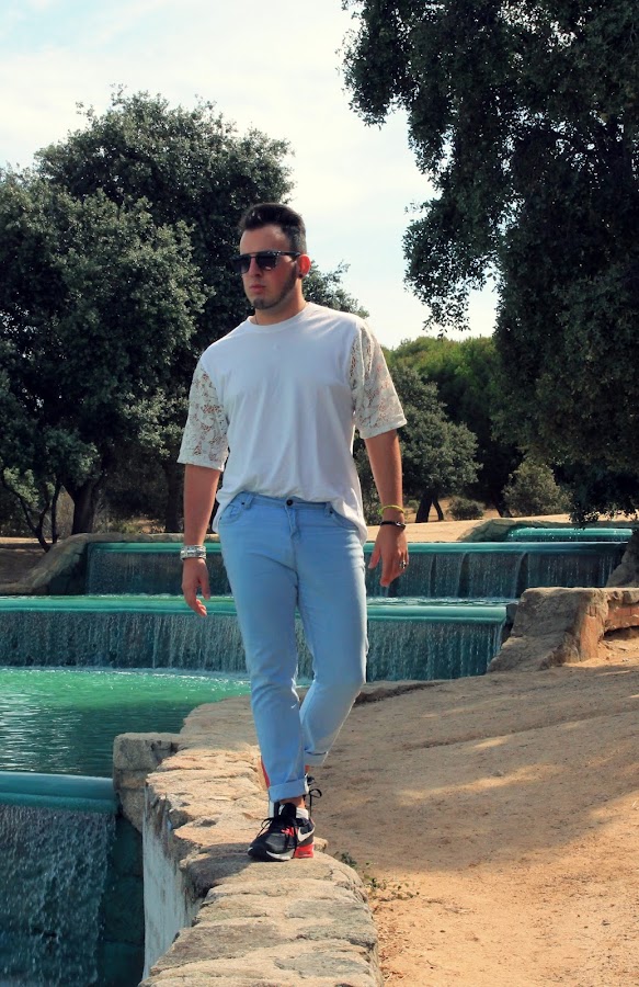 Ha llegado el momento de enseñaros una nueva creación. En este caso es una camiseta básica blanca pero con unas mangas inusuales. ¿Y color blanco porqué? La verdad es que es lo que me llamó más la atención en ese momento. Para mí, el color blanco es uno de los colores con los que más seguro me siento. El blanco, como el más claro de todos los colores, siempre ha transmitido bondad, humildad, estabilidad, luz, ligereza y limpieza. No sé cómo se me ocurrió, pero quizá sea un intento de reivindicación del encaje para los hombres. Siempre nos imaginamos espectaculares vestidos de encaje en it girls, o incluso las personas más spanish pueden encontrar en su cabeza la imagen de la mantilla española. Pero también hay que reconocer que hemos avanzado muchísimo en el terreno de la moda, y que no podemos clasificar como antes, ¡Los hombres ya llevamos de todo! Esta es una de mis propuestas en defensa del encaje para hombres, ¿os gusta? ¿Cuál sería la vuestra?
