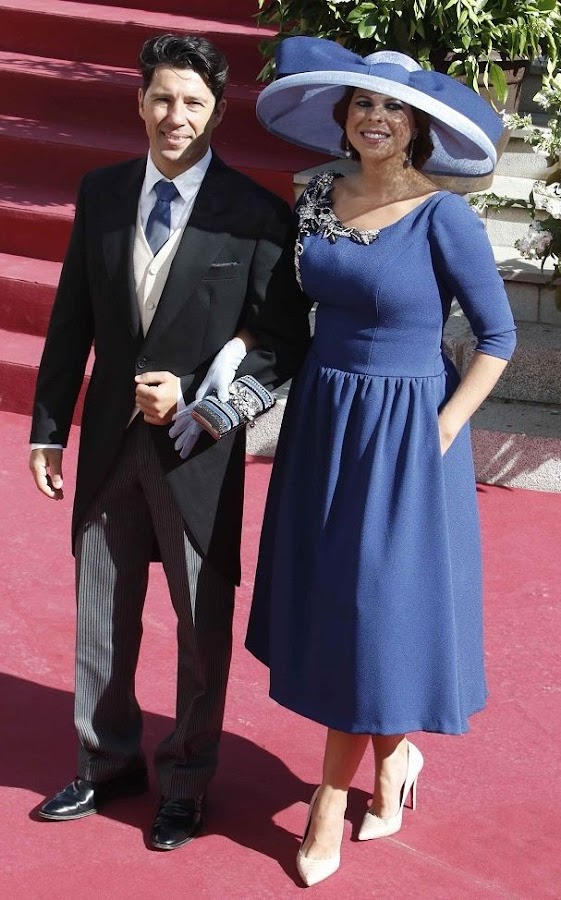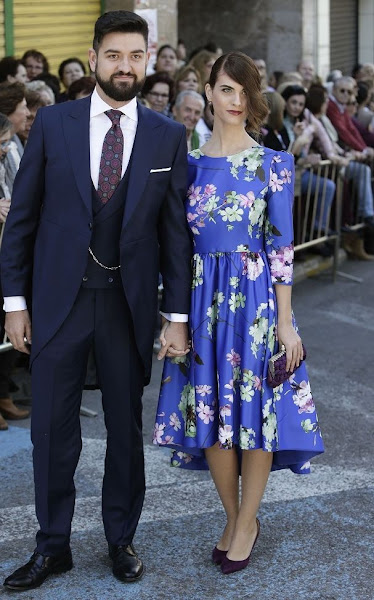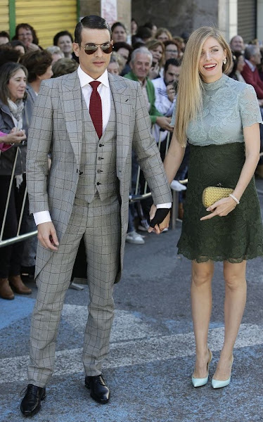 El encaje bicolor de Resurreción Samper. El vestido estampado de la acompañante de Manu Sánchez.