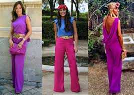 Mono, pantalón largo y blusa ¿Sí o no? ¡SÍ¡ Es cada vez una opción más que socorrida sobretodo para bodas de tarde-noche en las que no te apetece llevar vestido pero si tener las piernas cubiertas. Aquí la apuesta es sencilla, un conjunto de dos piezas en el que juegas con los colores y las texturas de los complementos o dejas que la prenda protagonista sea el mono o conjunto y simplificas los complementos. El peinado y el maquillaje, sencillos, destacando preferiblemente los ojos.