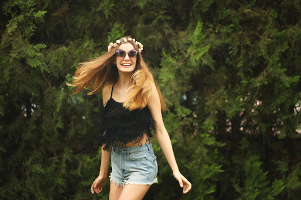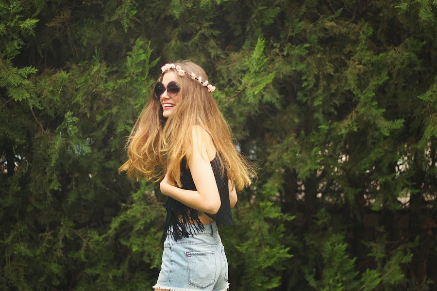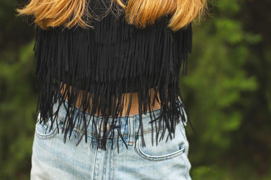 As showing us the video was so insipid, I decided to do a photos sesion inspirated in Coachella, who doesn"t dreams about going there someday? I tapped too for showing us my new top of Romwe (here) it"s black and with fringe, you hve to wear without bra beacuse it"s short and transparent into the back. I liked so much, I"m sure I will wear it so much this summer. I will show us more combinations!