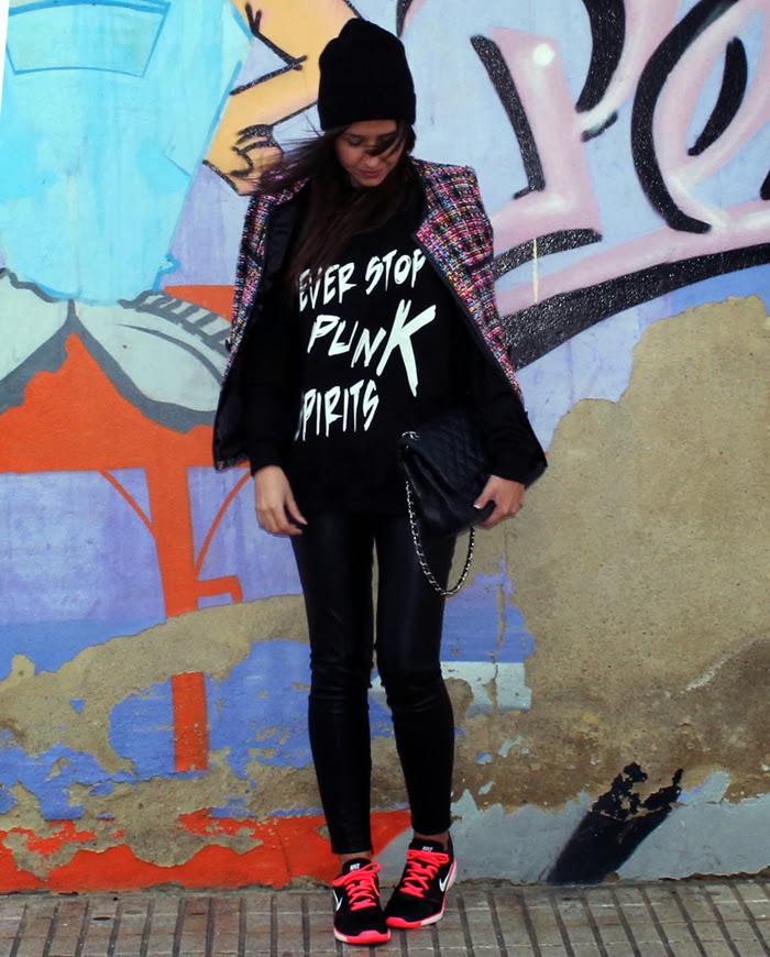 La sudadera os la enseñaba aquí la semana pasada, en esta ocasión le di un aire mucho más sport y me arriesgue añadiendo una chaqueta chanelera, también de Front Row Shop todas las prendas de esta web están repletas de estilo y dan juego a miles de combinaciones.