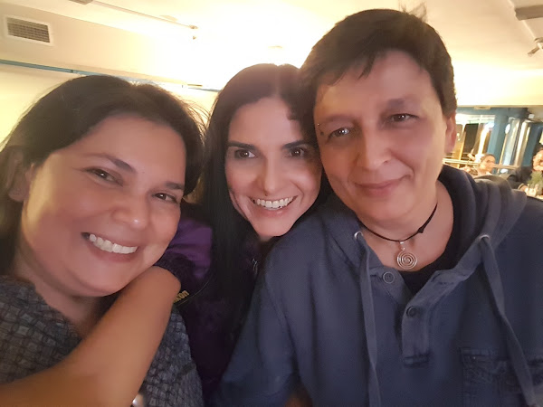 Yaritza a la izquierda y Eugenia a la derecha, organizadoras de esta bonita noche junto a Chus, uno de los asistentes