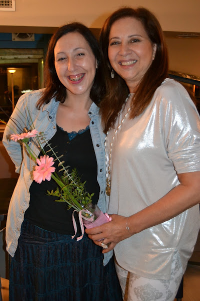 Mery junto a Marga, la florista, que decoró el ambiente con delicados centros de flores en color rosa